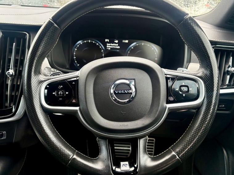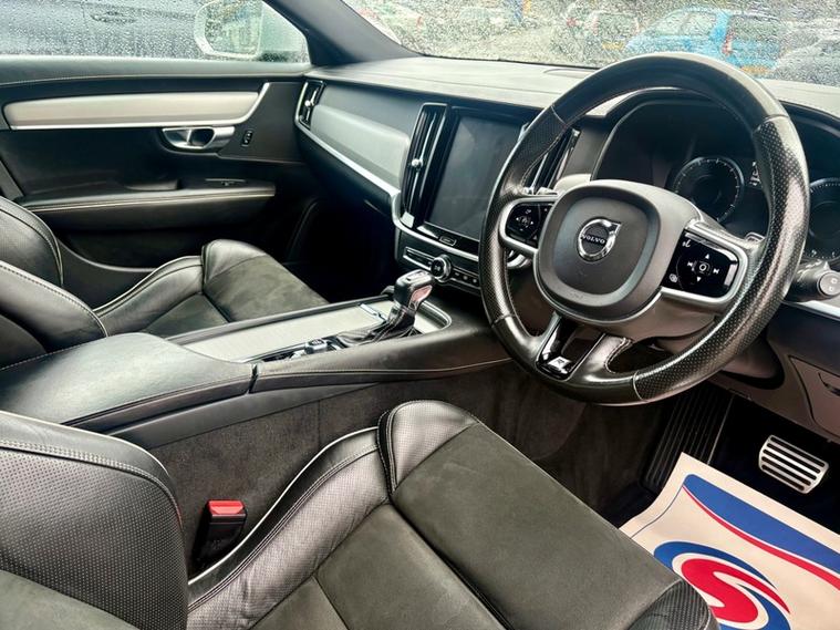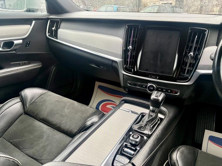 The R-Design specification offers an exceptional level of equipment and sporty styling, including satellite navigation, full leather and Alcantara R-Design sports seats, digital driver display, rear parking sensors, climate control, Bluetooth connectivity, DAB radio, cruise control, LED headlights and stylish alloy wheels. The V90?s spacious estate body provides outstanding comfort and practicality, with a generous boot and refined cabin finish throughout.