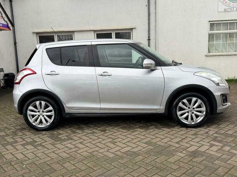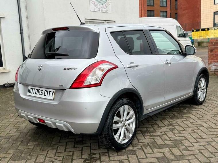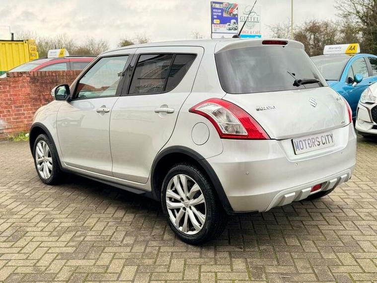 This 2015 Suzuki Swift SZ4 is a four wheel drive model offering excellent fuel economy of up to 59 miles per gallon. It features a 1.2 litre petrol engine and comes equipped with distinctive front and rear skid plates, wheel arch extensions, and side skirts, giving it a robust appearance. Inside, you'll find the convenience of Bluetooth integrated into the audio unit, allowing for handsfree calls and music streaming. The SZ4 trim also benefits from automatic headlamps that switch on by themselves and automatic air conditioning for a comfortable cabin environment.