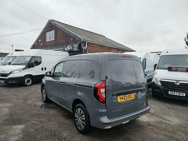 This 2023 Nissan Townstar presents a superb ownership proposition, having had only one owner since new. This L1 Euro 6 Tekna derivative is powered by an efficient 1.3 litre TCe petrol engine, delivering a healthy 128 bhp. It comes equipped with a host of modern conveniences, including keyless entry and go, a rear camera for easier parking, and an 8 inch colour touchscreen infotainment system that seamlessly integrates Apple CarPlay and Android Auto, complete with navigation. Automatic climate control ensures a comfortable cabin temperature, while LED headlights with daytime running lights enhance visibility.