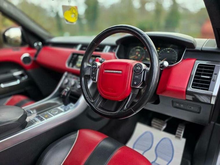 FOR SALE: Land Rover Range Rover Sport 5.0 V8 SVR Petrol Auto 4WD ? ULEZ compliant and presented in immaculate condition inside and out. Supplied with 2 keys and full service history, with the timing chain replaced for peace of mind. Fitted with a performance exhaust system that sounds incredible, along with soft-close doors, panoramic roof, adaptive signature LED lights, heated steering wheel, deployable side steps, rare gloss black roof rails, fridge in the armrest, and a 1700W upgraded Meridian sound system. Features adaptive cruise control with lane assist.