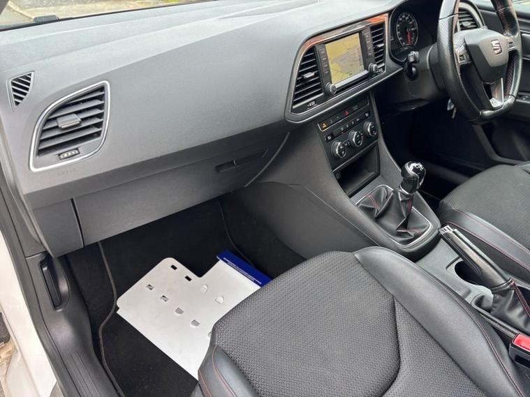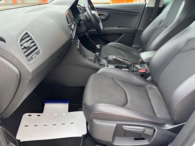 2016 SEAT Leon 1.4 Eco TSI 150 FR 5dr with Technology Pack is a 5-door Estate featuring a 148bhp 150ps 1.4 turbocharged petrol engine, 6-speed manual gearbox, 8 Stamp Service History. Only £35 to Tax. It boasts high efficiency with 57.6 mpg combined. The Technology Pack adds full LED headlights and 6.5' navigation.