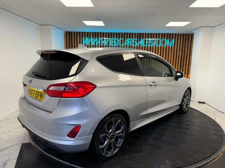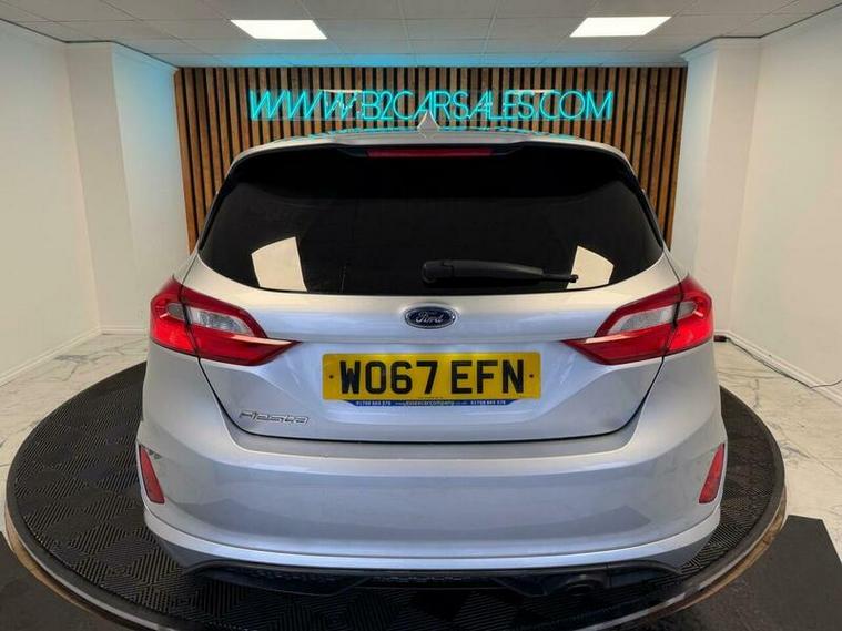 This 2018 Ford Fiesta ST-Line comes with a service history, and its last service completed on 09/02/2026 at 72, 162 miles, including new brake discs and brake pads, and an MOT valid until 29th December 2026 with no advisories , offering excellent peace of mind. This Euro 6 compliant 1.0L petrol model comes with a clear vehicle history check and is offered with a 3 month warranty and 2 keys. Notable features include a striking Shadow Black contrast roof and mirrors, and the NCAP Pack which includes automatic headlights. Inside, you'll find a Ford DAB radio with Ford SYNC3, compatible with both Apple CarPlay and Android Auto, alongside manual air conditioning.