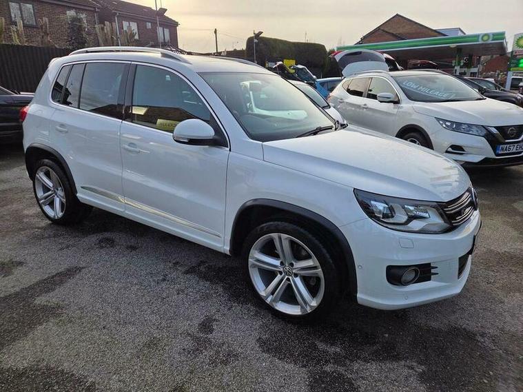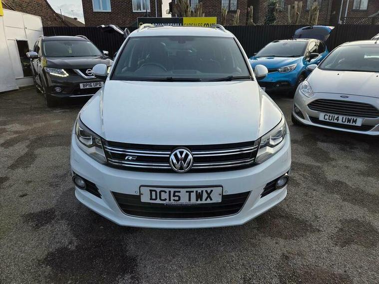 This 2015 Volkswagen Tiguan TDI R-Line boasts a full service history, ensuring its excellent provenance. This four wheel drive model features a powerful 2.0 litre diesel engine and meets Euro 6 emission standards. It comes equipped with the Discover Navigation Touch Screen System, a Styling Pack for the R-Line trim, and a multifunction steering wheel for convenience. For added comfort, it includes driver's lumbar support and ABS Plus anti-lock braking system.