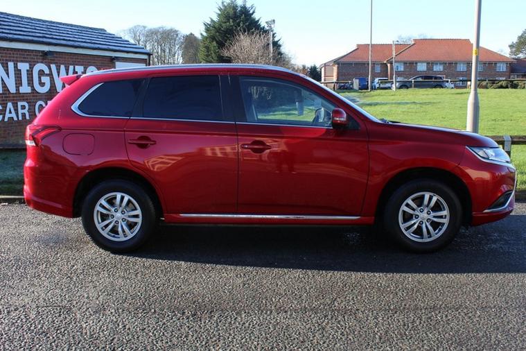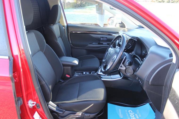 With very few of these for sale in the UK we have one very desirable Mitsubishi Outlander PHEV Reflex commercial edition with only 29, 000 miles on the clock and finished in a beautiful red metallic with a dark interior consisting of the two fixed frontal seats, fitted guard and a huge rear boot area while being topped of by some sparkling silver factory alloys.