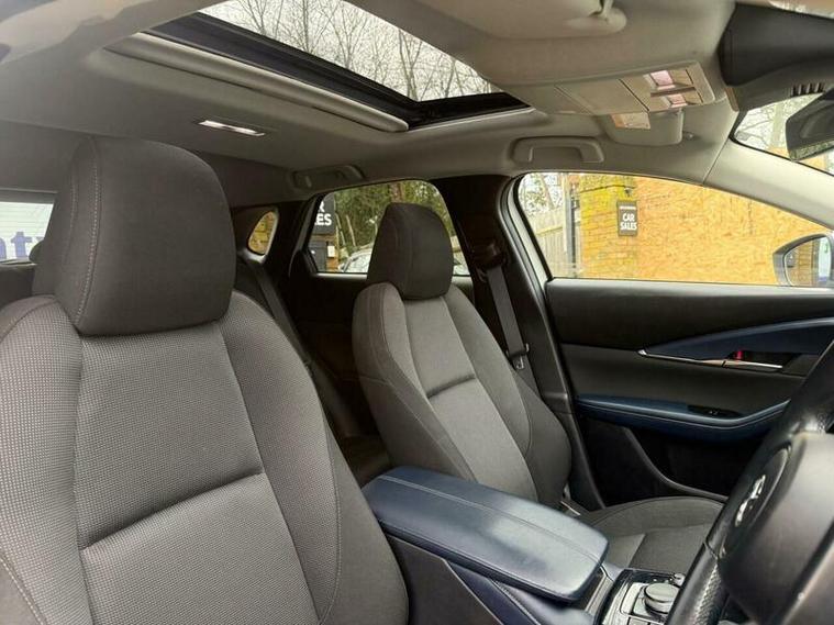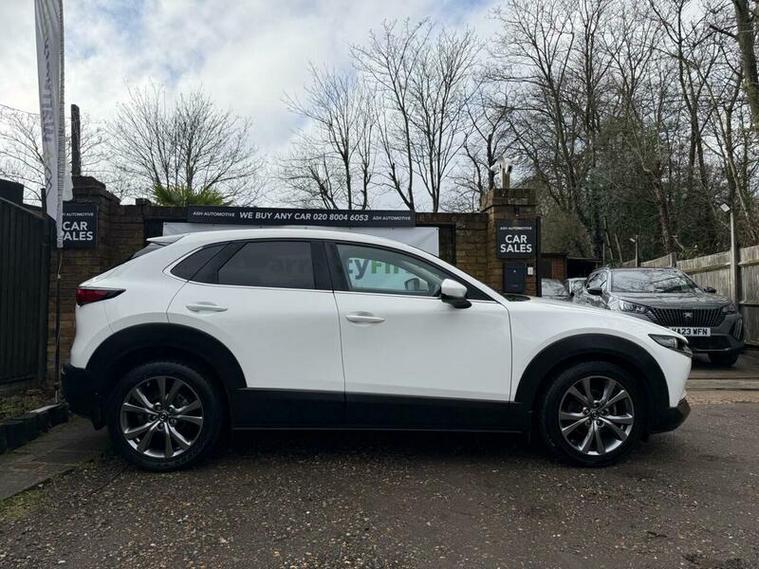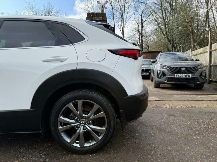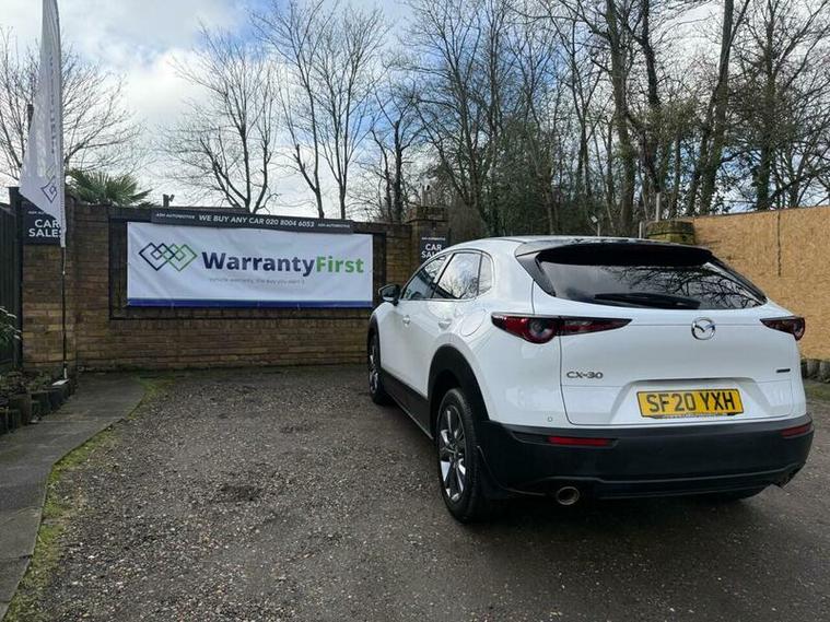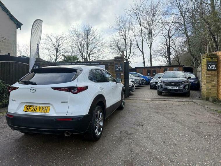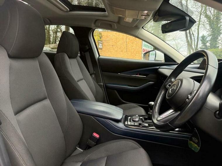 This Mazda CX-30 SKYACTIV-X Sport Lux from 2020 boasts a full service history and an MOT valid until February 2027, offering excellent peace of mind. This Euro 6 compliant 2.0L petrol model has had only one owner and comes with a clear vehicle history check. It features a reversing camera with parking assistance, adaptive LED headlights, blind spot monitoring with rear cross traffic alert, and Mazda Radar Cruise Control. Additionally, front and rear parking sensors are included for enhanced convenience.