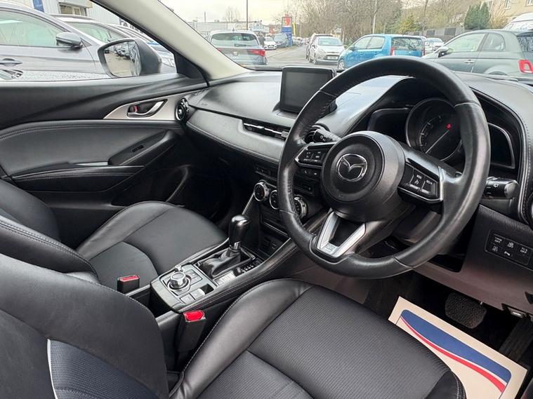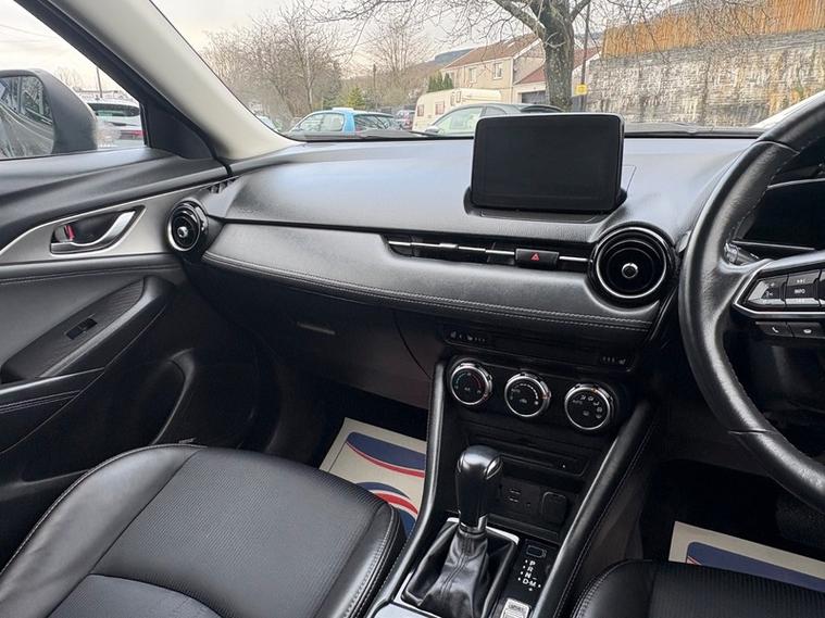 Powered by Mazda?s responsive 2.0 SKYACTIV-G petrol engine paired with a smooth automatic gearbox, it delivers the perfect balance of performance and efficiency. The Sport Nav+ trim means you?re getting top-spec luxury, including full leather upholstery, heated front seats, head-up display, integrated satellite navigation, reversing camera, BOSE premium sound system, dual-zone climate control, smart keyless entry, push-button start, cruise control, automatic headlights and wipers, plus striking 18-inch alloy wheels that complete the look.