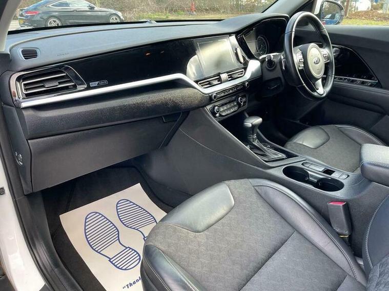 This 2019 Kia Niro GDi 2 presents an exceptional ownership proposition with its remarkably low mileage of just 28, 000 miles, a full service history, and a clear vehicle history check, all backed by a single owner since new. This Euro 6 compliant 1.6 litre petrol hybrid is equipped with a reversing camera system for easier parking, automatic headlights for convenience, and dual automatic air conditioning to maintain a comfortable cabin temperature. Enjoy seamless smartphone integration with Apple CarPlay and voice control, while the adaptive smart cruise control with stop and go functionality enhances your driving experience on longer journeys.