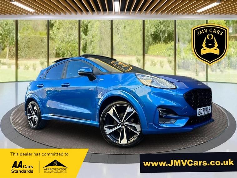 (Located at our Gravesend Branch) JMV CARS LTD ARE DELIGHTED TO PRESENT THIS STUNNING FORD PUMA ST-LINE X AUTOMATIC WITH AN INCREDIBLE SPECIFICATION, PRESENTED WITH WIDE SCREEN SATELITTE NAVIGATION, FULLY SLIDING OPENING PANORAMIC SUNROOF WITH SUNBLIND, PARKING CAMERAS, FULL HEATED UPHOLSTERY, AMBIENT INTERIOR LIGHTING, FORD SIGNATURE LIGHTING SYSTEM, BLUETOOTH HANDS FREE AND MEDIA, PARKING SENSORS, HEIGHT ADJUSTABLE STEERING WHEEL AND SEAT, DAB RADIO, STEERING WHEEL FUNCTIONS, THIS FORD PUMA IS TRULY STUNNING AND IS FULLY LOADED, , , WELCOME TO JMV CARS, WE ARE AA PARTNERS AND TRUSTED DEALER WITH OVER 100 CARS IN STOCK, ALL VEHICLES SUPPLIED WITH 12 MONTHS AA RECOVERY, PART EXCHANGE WELCOME, ALL VEHICLES SUPPLIED WITH 12 MONTHS MOT IF LESS THAN 6 MONTHS, OPEN 7 DAYS A WEEK, WE CAN ARRANGE FINANCE AT COMPETITIVE RATES, ALL CREDIT AND DEBIT CARDS ACCEPTED, NATIONWIDE DELIVERY AVAILABLE, CALL ANYTIME UP TO 9PM, dealer's website