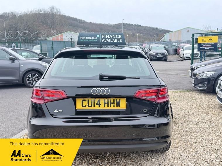 RTM MOTORS PRESENTING STUNNING EXAMPLE OF 2014 AUDI A3 2.0 TDI SPORT SPORTBACK 5DR DIESEL MANUAL EURO 5 (S/S) // £20 ROAD TAX A YEAR // NEW 12 MONTHS MOT ON SALE // Finance options available including Finance 24/7 // Car-money Finance and Finance companies // Recently serviced with a Service history // CAR COMES WITH TRADING-STANDARDS FREE 6 MONTHS WARRANTY PARTS & LABOUR NATIONWIDE & FREE 12 MONTHS AA BREAKDOWN COVER // Awesome Power and Super Economy with Excellent Condition both inside and out // READY TO DRIVE AWAY // A brilliant Bargain // First to see will buy // You wont be disappointed // Additional services include nationwide home delivery (quote available upon request) // ALL MAJOR CREDIT AND DEBIT CARDS ACCEPTED // TRANSACTION CHARGES MAY APPLY // PART EXCHANGE MAY BE CONSIDERED // AA, RAC, ANY INSPECTION WELCOME // WE ARE A COMPANY BASED IN CARDIFF // WE OFFER A PREMIUM LEVEL OF SERVICE // SO YOU CAN BUY WITH CONFIDENCE // OFFERING HUGE savings on quality used cars in Wales // We are a family run small business with approximately 20 years of experience in the Motor Trade, We operate in a fair and transparent manner with a non-pushy sales approach // we take our prep standards very seriously and every car goes through an extensive process dependent on age and Mileage // EVERY CAR IS HPI CHECKED, Viewing and test drive are essential // WE OFFER VALUE FOR MONEY // MOST CARS OFFERED ARE PART EXCHANGE FROM MAIN DEALER DIRECT // BEST PART EXCHANGE PRICE OFFERED // Please call us to book a test drive or more information we are happy to assist you // NATIONWIDE HOME DELIVERY IS AVAILABLE PLEASE ASK FOR A QUOTE MEMBER OF TEAM *** PLEASE NOTE SUNDAY OPENING HOURS 10.AM TILL 4.PM VIEWING BY APPOINTMENT THANKS***