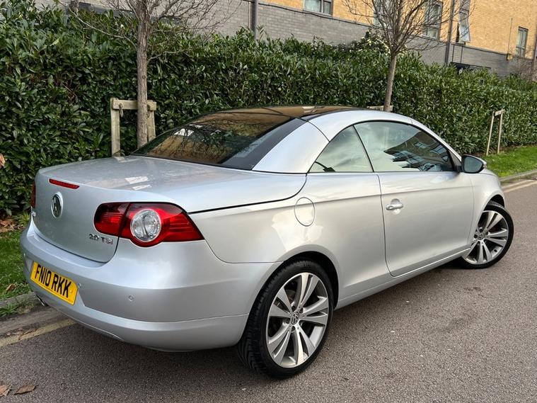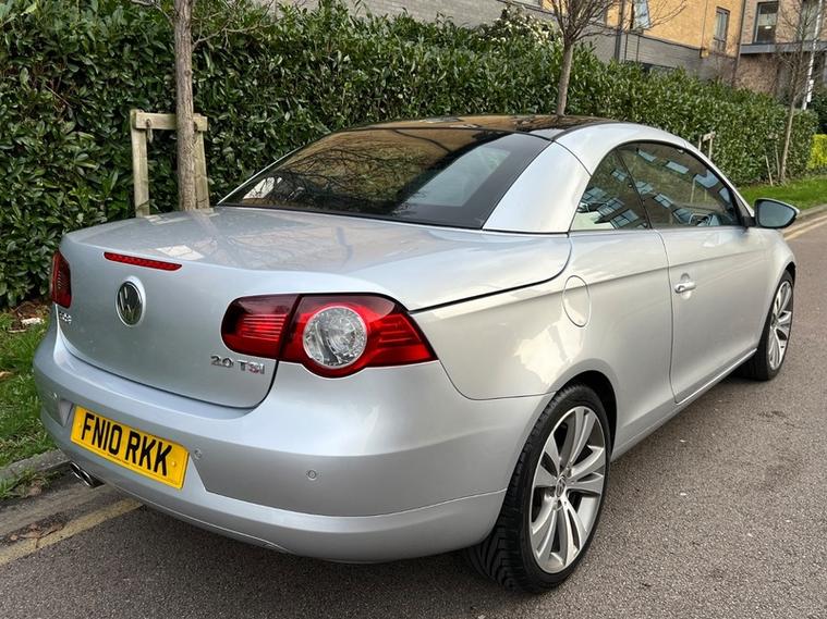 This 2010 Volkswagen Eos TSI Sport is presented with a clear vehicle history check, offering peace of mind for its next owner. This stylish convertible features a 2.0 litre petrol engine and a Sport trim, complemented by a sophisticated CSC roof system. This innovative five section folding roof includes an electric slide and tilt sunroof, allowing you to enjoy open air driving at your convenience. Further enhancing your driving experience are rear parking sensors with parking assistance, automatic headlights, and semi automatic air conditioning with climate control, all part of the desirable Luxury Pack.