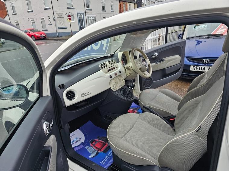 This 2010 Fiat 500 Lounge is presented with a clear vehicle history check, offering peace of mind for its next owner. This stylish city car features a 1.2L petrol engine and the desirable Lounge trim, which includes a fixed glass roof with a sunblind, providing an open and airy feel to the cabin. For convenience, it is equipped with the Blue&Me hands free system, complete with a USB port and Bluetooth connectivity, alongside air conditioning to ensure comfort on every journey., , The Fiat 500 Lounge stands out with its impressive fuel economy, achieving up to 59 miles per gallon, which indicates it is more economical than many other vehicles in its class. Furthermore, its low insurance group rating suggests that running costs will be kept to a minimum. Coupled with low CO2 emissions, this 2010 Fiat 500 Lounge presents a sensible and enjoyable choice for navigating urban environments., , , Fiat 500 1.2 Lounge Euro 5 (s/s) 3dr - ideal first car, in nice colour, came in as a trade in, low tax and insurance groups, nice colour, , Next MOT due 18/11/2026, Part service history, Good bodywork, Interior - Clean Condition, Tyre condition Good, 4 seats, White, 15in Alloy Wheels, ABS - Anti-Lock Braking System, Air Conditioning, Airbags - Driver, Airbags - Front Side, Airbags - Passenger, Black ambience, Blue&Me - Hands Free System with USB Port, Body colour door mirrors, Chrome Kit, Drivers Knee Airbag, EBD - Electronic Brakeforce Distribution, Electric Front Windows, Electrically Adjustable Heated Door Mirrors, Fixed Glass Roof with Sunblind, Fixed Glass Sunroof with sunblind, ISOFIX Child Seat Attachments, Ivory ambience, Lounge Interior Trim, Power Steering - Dualdrive Electric, Radio-CD and MP3 Player, Remote Central Locking, Space Saver Spare Wheel, Steering Wheel - Height Adjustment, Steering Wheel - Leather with Audio Controls, Window Airbags, JT Car Sales Worksop LTD is a family run business Est in 2014. Selling quality used cars at affordable prices, we offer Warranty Wise and Finance on all our vehicles - We can finance cars at any prices, please ask office for more details - FINANCE AVAILABLE, we take in part exchange towards any of our cars, we are a AA dealer approved company, we make sure all our cars come with a minimum 6 months mot, test drive / inspection welcome any time, HPi report can be requested on any vehicles, we aim to provide the best service possible - we help all our customers in office to complete all docs at the point of sale and can help with insurance if needed, All list if stock vehicles can be find on our profile page / website - car 32 - DY60GGO