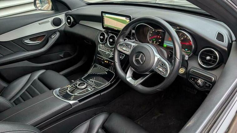 This 2019 Mercedes Benz C Class C200 AMG Line presents an exceptional find with its remarkably low mileage of just 31, 000 miles. This Euro 6 compliant 1.5 litre petrol model, finished in the sporty AMG Line trim, boasts striking 20 inch alloy wheels painted in high gloss black, complemented by a sophisticated black leather interior. Inside, you will appreciate the comfort of heated front seats and the convenience of a reversing camera for easier parking. The Audio 20 CD system with Bluetooth connectivity ensures your journeys are always accompanied by your favourite music or podcasts.