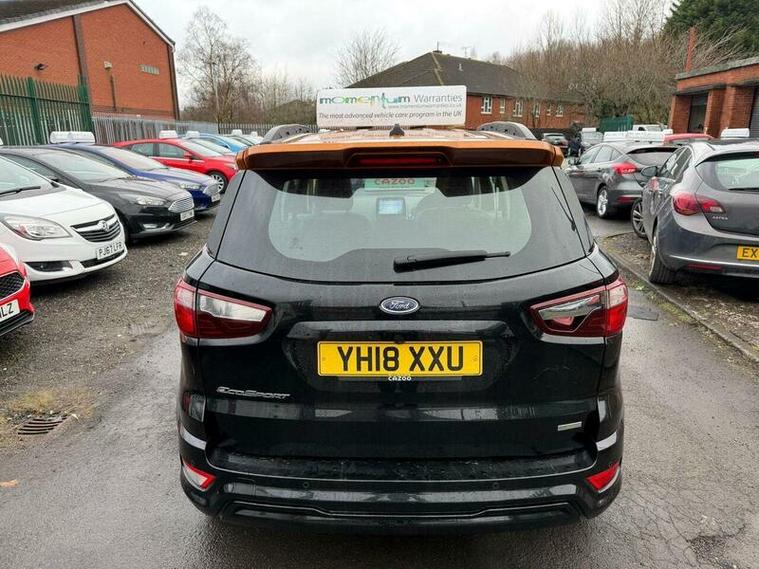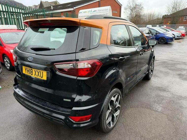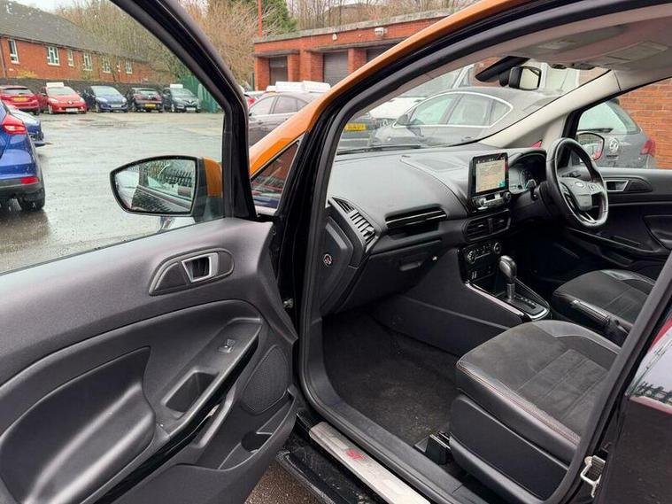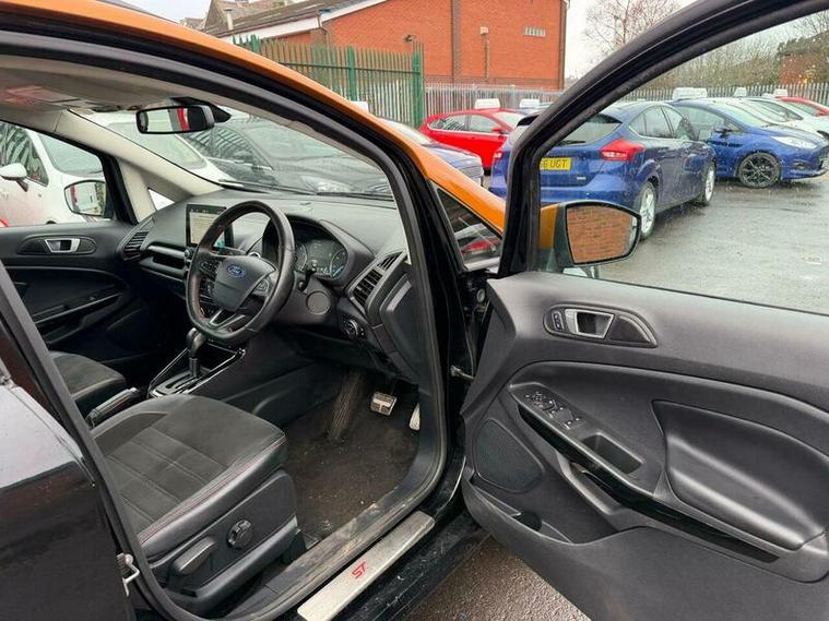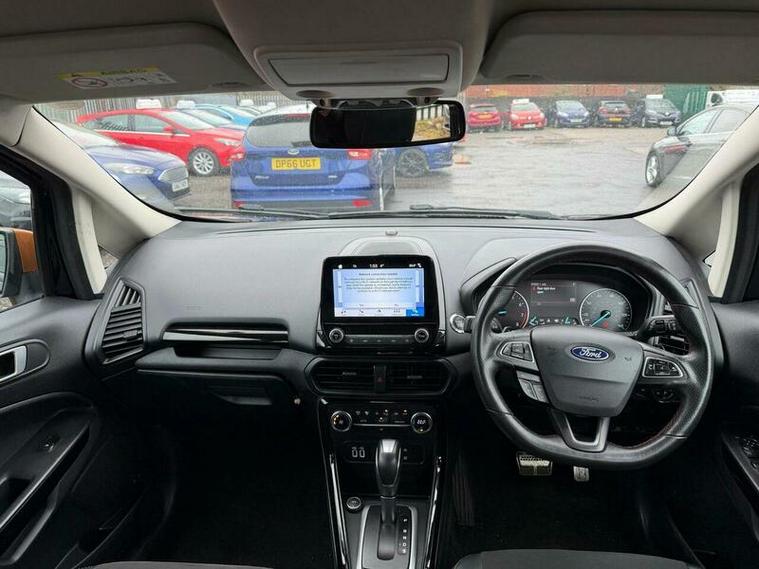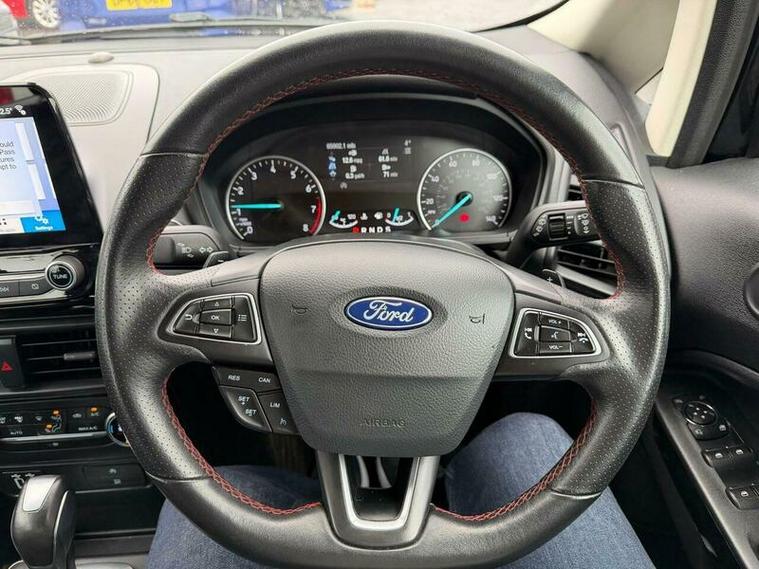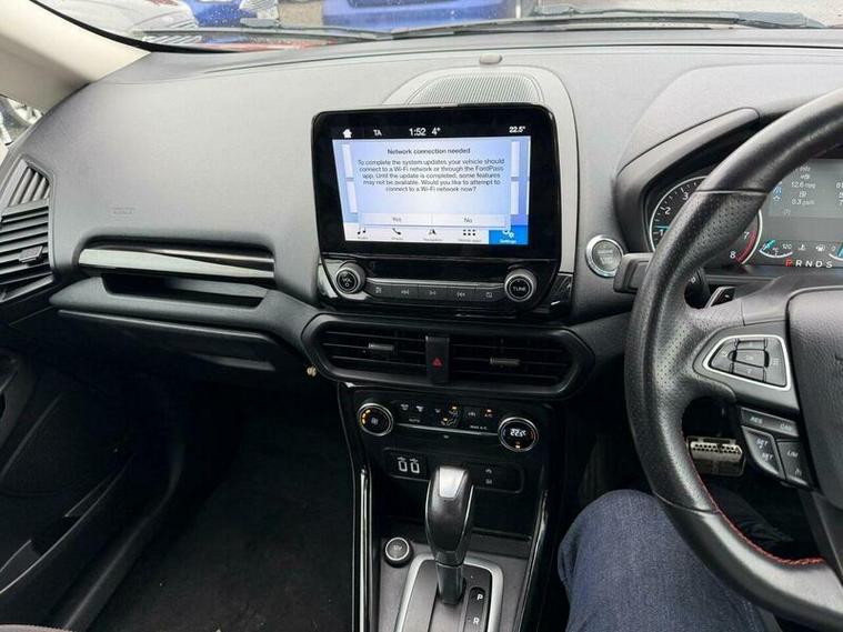 This 2018 Ford EcoSport T ST-Line offers a compelling blend of style and practicality, making it an excellent choice for those seeking a versatile compact SUV. Powered by an efficient 1.0L petrol engine, this Euro 6 compliant model ensures you meet modern emission standards. The ST-Line trim enhances its sporty appeal with distinctive ST-Line bumpers and side skirts, while the interior boasts Electronic Automatic Temperature Control for a comfortable cabin environment. Navigating and staying connected is effortless thanks to the Ford DAB Navigation System with Ford SYNC3, which includes Android Auto and Apple CarPlay compatibility, alongside Bluetooth for seamless phone integration. For added convenience and safety, it features a rear view camera and rear parking sensors, aiding in parking manoeuvres. You'll also appreciate the practical storage solution found in the front passenger underseat area.