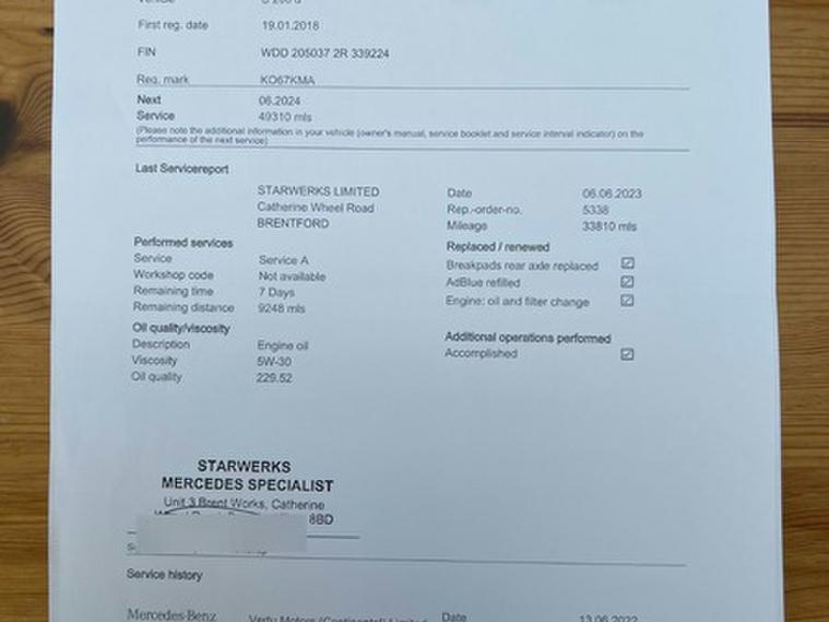 This car comes with 5 seats, Blue, 3 owners, 17in Alloy Wheels - 5 Twin-Spoke Design Painted in Himalayas Grey, 7in Colour Display - High-Resolution, ABS - Anti-Lock Braking System, ATTENTION Assist, Active Bonnet - Pedestrian Safety which Detects an Impact and Raises Bonnet, Active Parking Assist including PARKTRONIC, Adaptive Brake Lamps, Adaptive Brake with Hold Function - Hill Start Assist - Brake Drying, Agility Control - Sports Suspension - Lowered by 15mm, Airbags - Dual Stage - Driver and Front Passenger, Airbags - Front Sidebags, Airbags - Pelvisbag, Alarm System with Immobiliser and Interior Protection, Audio 20 CD, Automatic Child Seat Recognition Sensor, Automatically Dimming Rear View Mirror and Drivers Door Mirror, Bluetooth Interface for Hands-Free Telephone, Central Locking with Interior Switch - Automatic Locking and Crash Sensor with Emergency Opening Function, Childproof Locks - Manually Operated for Rear Doors and Electrically Operated for Rear Power Windows, Collision Prevention Assist Plus, DAB Digital Radio Tuner, Drivers Kneebag, Dynamic Select with a Choice of Driving Modes - Comfort - ECO - Sport - Sport Plus - Individual, ESP - Electronic Stability Programme, Electric Parking Brake, Electric Windows - 4 - With One-Touch Opening and Closing - including Obstruction Sensors, Electronic Key - Chrome Surround, First Aid Kit and Warning Triangle, Front Centre Armrest with Stowage Compartment, Front Door Sills with Mercedes-Benz Lettering, Front Seats - Electrical Height and Backrest Adjustment and Four-Way Lumbar Adjustment, Fuel Computer, Full LED Tail Lights, Garmin Map Pilot Navigation System, Gearshift Paddle on Steering Wheel, Headlamps - LED High Performance with Integrated LED Daytime Running Lights, Heated Front Seats, Heated Windscreen Washer System, ISOFIX Child Seat Attachment Points with Top Tether in Rear, Illuminated Glove Compartment, Instrument Cluster with Two Tube-Design Round Dials and 5.5in TFT Multi-Function Display, Interior Lighting Package, Mercedes Connect Me - Standard Services, Mirror Package, Outside Temperature Display, Power Steering - Direct-Steering Speed Sensitive, Pre-Wiring for Garmin Map Pilot Navigation System, Radiator Grille with Integrated Star - Two Louvres in Matt Iridium Silver with Chrome Trim, Radio Aerial Integrated into Rear Window, Rain Sensing Windscreen Wipers, Remote Boot Release, Reversing Camera, SPEEDTRONIC Cruise Control and Variable Speed Limiter, Seat Belts - Black, Seat Comfort Package, Seats - Rear Split Folding 40-20-40, Seats - Sports, Service Indicator ASSYST, Speakers with FrontBass, Status Display for Rear Seat Belts in Instrument Cluster, Steering Column - Manually Adjustable for Height and Reach, Steering Wheel - 3-Spoke Multi-Function in Leather with Trim in Silver Chrome and Perforated Leather in Grip Area, Steering Wheel - Multi-Function with Audio and Onboard Settings Control, Stowage - Double Cup Holder in Centre Console, Stowage Package, Sun Visors with Illuminated Vanity Mirrors, THERMATIC - Automatic Climate Control - Two-Zone, TIREFIT with Tyre Inflation Compressor, Tinted Glass All Round - Green, Top Surround of Side Windows in Polished Aluminium, Trim - High-Gloss Black with Aluminium Door Trims, Two USB Ports and an SD Card Slot in Centre Console, Tyre Pressure Monitoring System, Windowbags for Driver-Front Passenger and Rear Passengers,