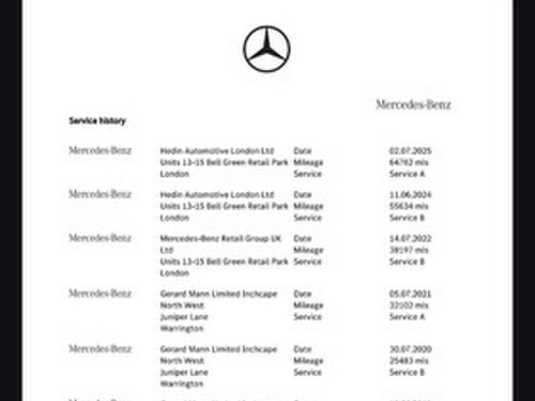 This car comes with 5 seats, Black, 2 owners, 18in Alloy Wheels - 5-Spoke Design - Painted Vanadium Silver, ABS - Anti-Lock Braking System, ATTENTION Assist, Active Bonnet - Pedestrian Safety Measure which Detects an Impact and Raises Bonnet, Active Parking Assist including PARKTRONIC, Adaptive Brake Lights, Adaptive Brake System with HOLD Function and Brake Drying in the Wet, Agility Control - Comfort Suspension, Alarm System with Immobiliser and Interior Protection, Audio 20 CD, Automatic Child Seat Recognition Sensor, Chrome Trim - Front - Side and Rear, Collision Prevention Assist Plus, DAB Digital Radio Tuner, Direct-Steer Speed Sensitive Steering, Door Mirrors - Electrically Adjustable and Heated, Dual-Stage Airbags - Driver and Front Passenger - Driver Kneebag and Windowbags for Driver - Front Passenger and Rear Passengers, Dynamic Select with a Choice of Driving Modes - Comfort - ECO - Sport - Sport Plus - Individual, EASY-PACK Load Compartment Cover - Removable, EASY-PACK Powered Tailgate, Electric Parking Brake, Electric Windows - 4 - With One-Touch Opening and Closing - including Obstruction Sensors, Electronic Stability Programme-ESP with Curve Dynamic Assist and Crosswind Assist, Floor Mats - Velour Mats in Interior Colour, Front Door Sill Panels with Mercedes-Benz Lettering, Garmin Map Pilot Navigation System with Live Traffic Information, Glove Compartment Illuminated and Lockable, Headlamp Assist - Automatic Headlamp Activation, Headlamps - LED High Performance with Integrated LED Daytime Running Lights, High-Resolution 7in Multimedia Colour Display, ISOFIX Child Seat Attachment Points with Top Tether in Rear - Two Outer Seats, Instrument Cluster with 5.5in TFT Multifunction Display, Interior Lighting Package, KEYLESS-GO Starting Function, LED Tail Lights, Mercedes Connect Me - Standard Services, Mercedes Me Connect - Remote Online, Mirror Package, Outside Temperature Display - Rear Seat Belt Status Indicator, Pre-Wiring for Garmin Map Pilot Navigation System, Privacy Glass - Dark Glass from B-Pillar Backwards, Radiator Grille with Integrated Star - Two Chrome-Trimmed Louvres, Rain Sensing Windscreen Wipers, Remote Boot Release, Reversing Camera, Roof Rails - Aluminium Finish, Seat Belts - Black, Seats - Front Electrically Adjustable, Seats - Heated Front, Service Indicator ASSYST, Speakers with Frontbass x5, Steering Column - Manually Adjustable for Height and Reach, Steering Column Gear Selector - DIRECT SELECT Steering Wheel Gearshift Paddles - SPEEDTRONIC Cruise Control with Variable Speed Limiter, Steering Wheel - 3-Spoke Multi-Function - Trimmed in Leather, Stowage - Dividing Net for Luggage Compartment Partitioning and Occupant Protection, Stowage - Double Cup Holder in Centre Console, Stowage Package, Sun Visors with Illuminated Vanity Mirrors, TIREFIT Tyre-Sealant Kit, Thermatic - Automatic Climate Control, Tinted Glass All Round - Single-Layer Safety Glass, Trim - Black Ash Wood Look, Two USB Ports in Centre Console, Tyre Pressure Monitoring System, Visible Tailpipe Exhaust Trim Integrated into Rear Bumper,