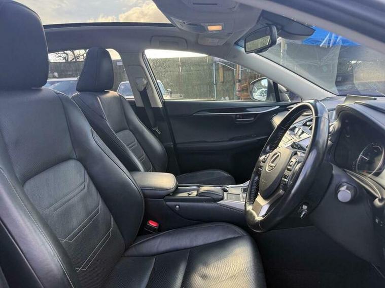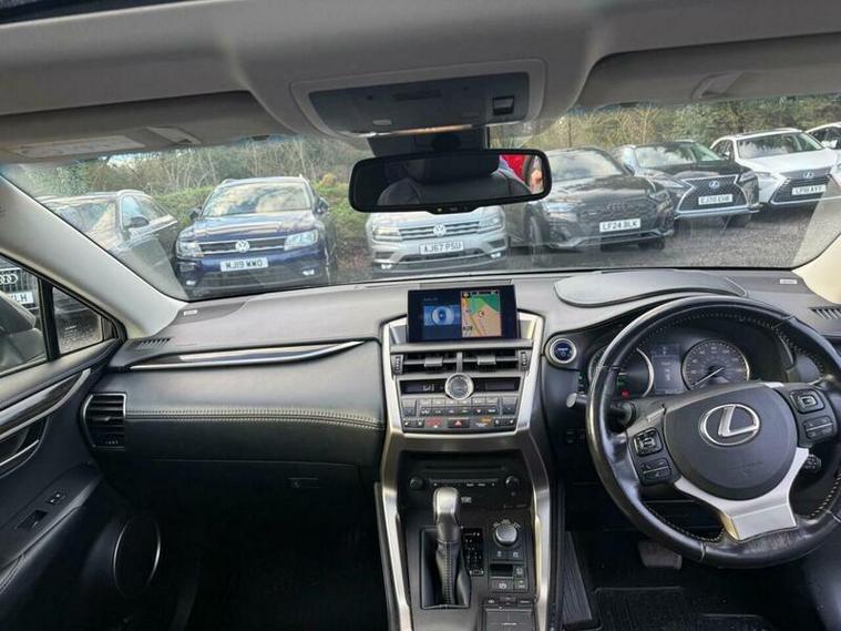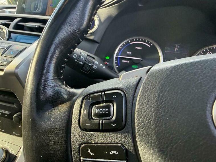 This 2016 Lexus NX 300h Premier is presented with a clear vehicle history check, offering peace of mind for its next owner. This Four Wheel Drive model boasts a 2.5 litre petrol hybrid engine, meeting Euro 6 emission standards. The Premier trim level ensures a premium experience, featuring an electrically adjustable heated leather steering wheel and a memory function for the driver's seat. For enhanced comfort and convenience, it includes adaptive cruise control with pre-crash safety, a sophisticated Mark Levinson audio system, and a 360 panoramic view camera for effortless parking.