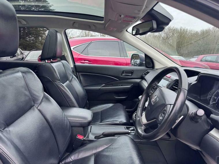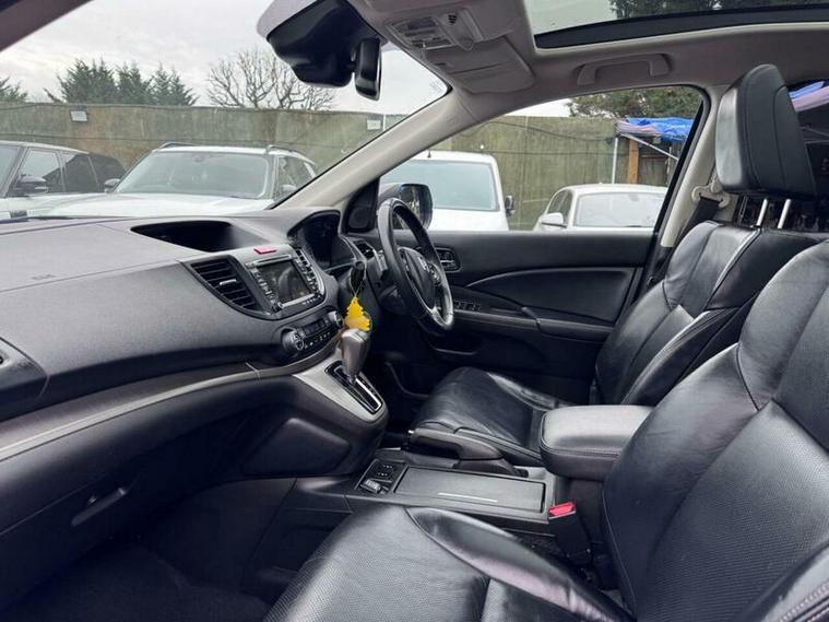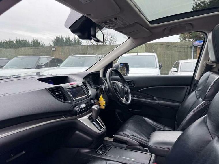 This Honda CR-V i-VTEC EX from 2014 boasts a clear vehicle history, offering you peace of mind. This Four Wheel Drive model is equipped with a 2.0L petrol engine and features desirable EX trim enhancements. You'll appreciate the convenience of Smart Keyless Entry and Start, along with the sophisticated Bi-HID headlights that include automatic levelling and a dusk sensor. The vehicle also benefits from 18in Lyra alloy wheels and a fixed Panoramic Glass Roof, creating an airy and open cabin experience.