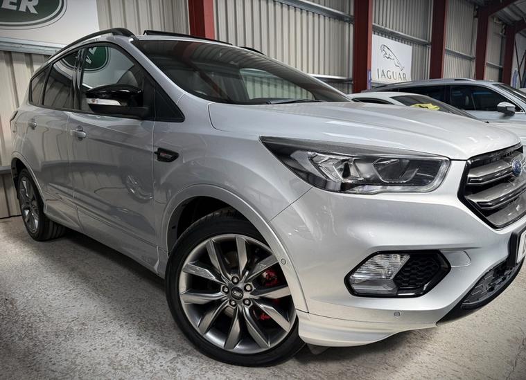 This 2019 Ford Kuga TDCi ST-Line Edition boasts exceptionally low mileage for its age, having covered just 40, 000 miles. This Euro 6 compliant 2.0L diesel model comes with a full service history, offering peace of mind. The ST-Line Edition trim level is enhanced with a suite of impressive features, including Enhanced Active Park Assist with front and rear parking sensors, making manoeuvring effortless. Automatic halogen headlights with LED daytime running lights ensure visibility, while the power opening panoramic roof adds a sense of spaciousness and light to the cabin. Inside, you'll find DEATC dual-zone electronic automatic temperature control for personalised comfort.