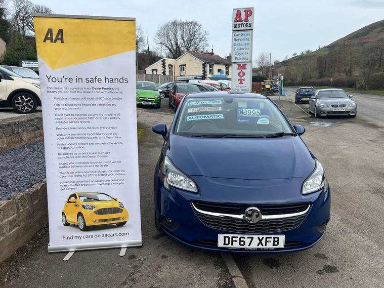 Here we have just arrived in stock is this very low mileage Vauxhall Corsa 1.4 Energy Automatic , 3 Door in Blue , Lovely condition inside & out with Only 33039 Miles , Heated Seats & Steering Wheel , Aircon , DAB Radio with Bluetooth , Full Service History , 2 Keys & All Handbooks , Sold with 12 Months MOT , 12 Months AA Roadside Breakdown Cover , 3 Months Parts & Labour Warranty & Full Service , We are a AA approved used car dealership , Check out more stock & our reviews on our web page , dealer's website , Part Exchange Welcome & Finance arranged .