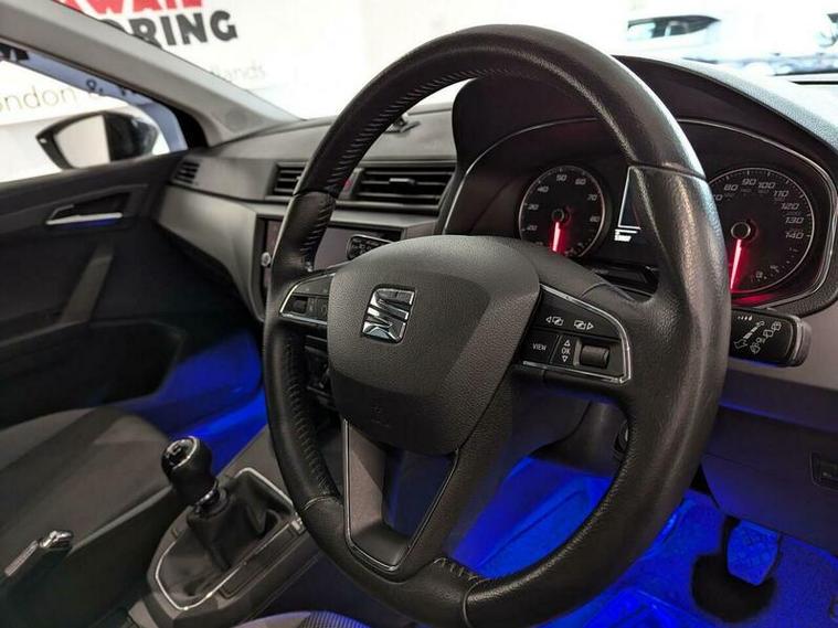 Discover this 2019 SEAT Ibiza MPI SE Technology, a car that offers a superb blend of style and practicality. This model boasts a 1.0 litre petrol engine and meets Euro 6 emission standards, making it an efficient choice. Inside, you'll find a comfortable cabin equipped with air conditioning to keep you cool, and Full Link smartphone integration, compatible with both Android Auto and Apple CarPlay, allowing seamless connection of your devices. The convenience continues with auto headlights that adjust automatically and a Bluetooth handsfree system for safe and easy communication on the go.