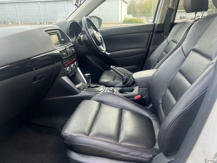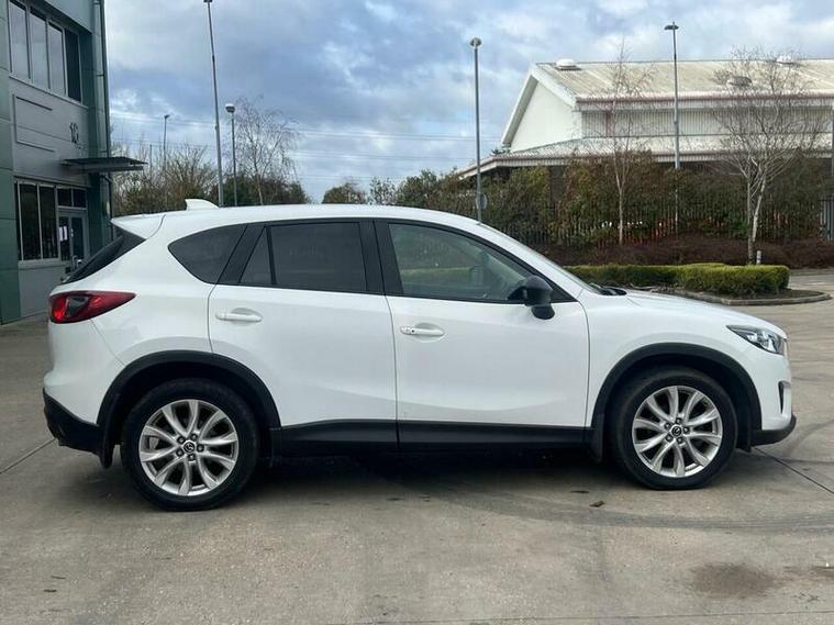 HPI clear, 3 months warranty, drive away insurance available, finance available, ULEZ compliant, high spec model with loads of extras With an exceptionally low mileage of just 47, 980 miles for a 2013 model, this Mazda CX-5 SKYACTIV-D Sport Nav presents a remarkable find. This Four Wheel Drive variant, registered in 2013, boasts a 2.2 litre diesel engine and meets Euro 6 emissions standards. Its provenance is further strengthened by a clear vehicle history check, a full service history, and an MOT valid until October 2026, with the last service completed on 15th February 2026. The Sport Nav trim includes desirable features such as dusk sensing automatic headlights, Bi-Xenon headlights, dual zone climate control for personalised comfort, advanced keyless entry, and an integrated Bluetooth system for seamless connectivity., , This Mazda CX-5 stands out with several key advantages. Its fuel economy is a notable highlight, achieving an impressive 51 miles per gallon, which is better than many comparable vehicles. Furthermore, it falls into a low insurance group, making ownership more affordable. Practicality is also a strong point, offering generous boot space for all your needs. Coupled with low CO2 emissions, this CX-5 demonstrates a commitment to efficiency and environmental consideration, setting it apart from other vehicles in its class. With only two previous owners, this well maintained example is ready for its next chapter., Next MOT due 01/10/2026, Last serviced on 15/02/2026, Full service history, Excellent bodywork, Interior - Excellent Condition, Tyre condition Excellent, 5 seats, White, 2 owners, 12V Power Socket - Cargo Area, 19in Alloy Wheels, Air Conditioning - Dual Zone Climate Control, Airbags - Curtain Front and Rear, Airbags - Driver, Airbags - Front Passenger, Airbags - Front Passenger Deactivation System, Anti Lock Braking System, Armrest - Rear, Audio Systems - AM-FM Radio-CD Player, Audio Systems - AM-FM Radio-Premium BOSE Centrepoint Surround Sound System-Speakers x9-6CD Changer, Auto Dimming Rear View Mirror, Cruise Control, DSC - Dynamic Stab
