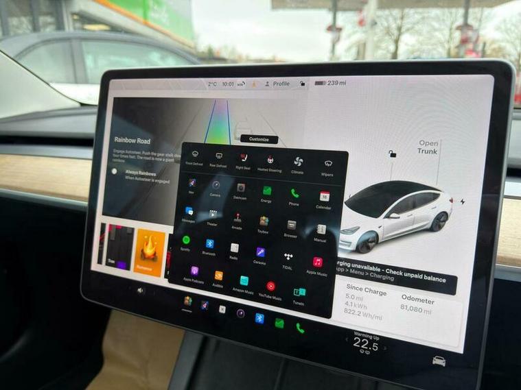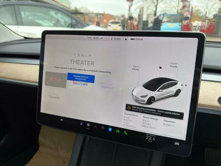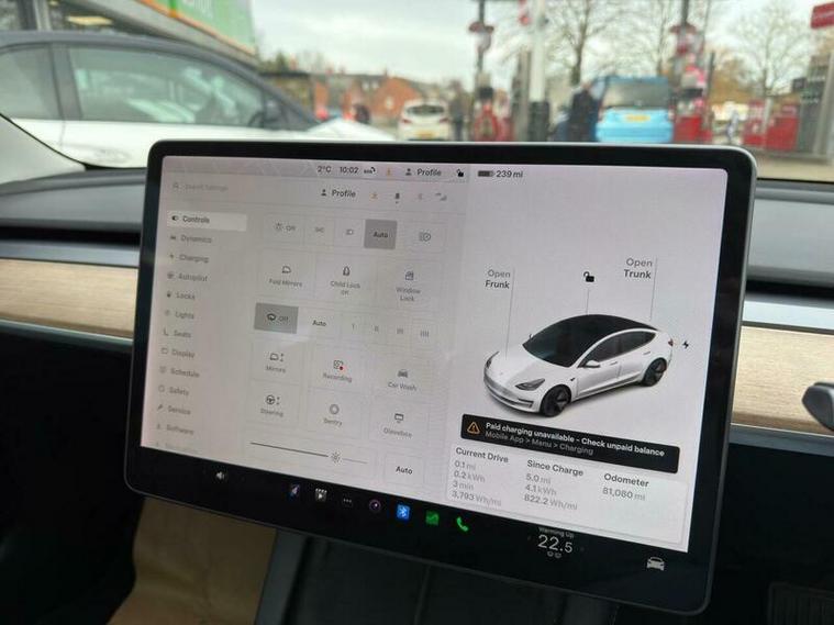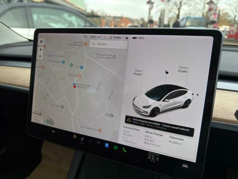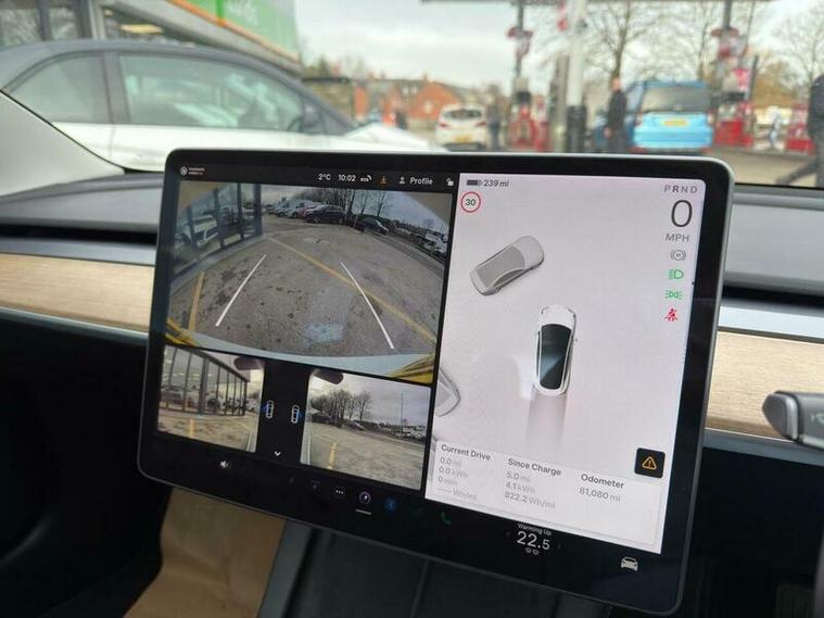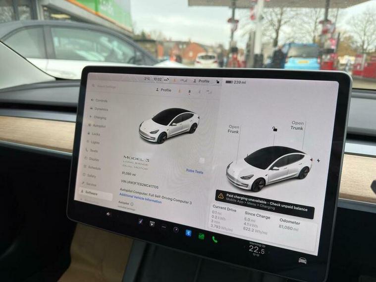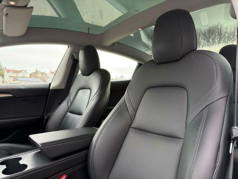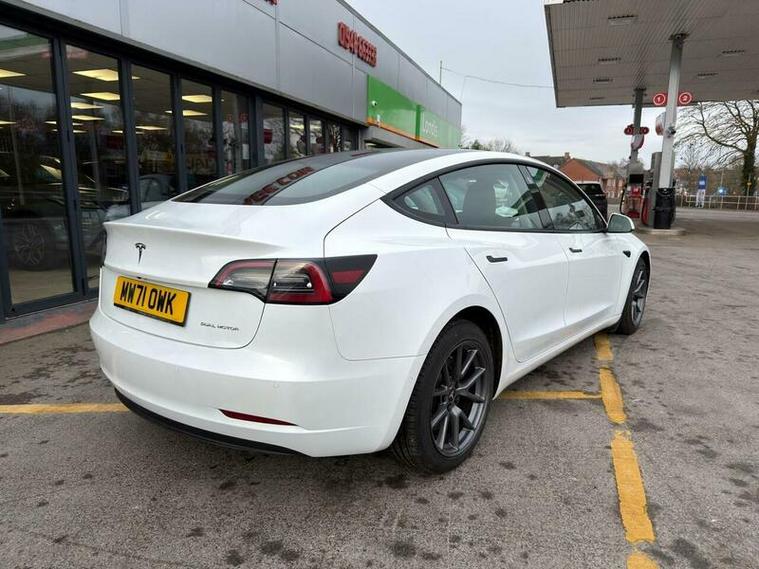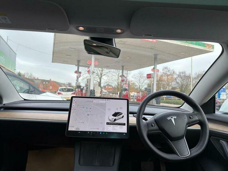 This 2021 Tesla Model 3 Long Range boasts a single owner from new, offering a well cared for electric driving experience. As a Long Range variant, this Four Wheel Drive model features a substantial 78 kWh battery, providing an impressive maximum range of 360 miles when new. Convenience is key with keyless entry and remote control via an app, alongside front and rear parking sensors to aid manoeuvrability. Inside, you can enjoy the open feel of a fixed panoramic glass roof and seamless connectivity through Bluetooth.