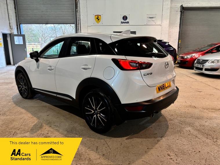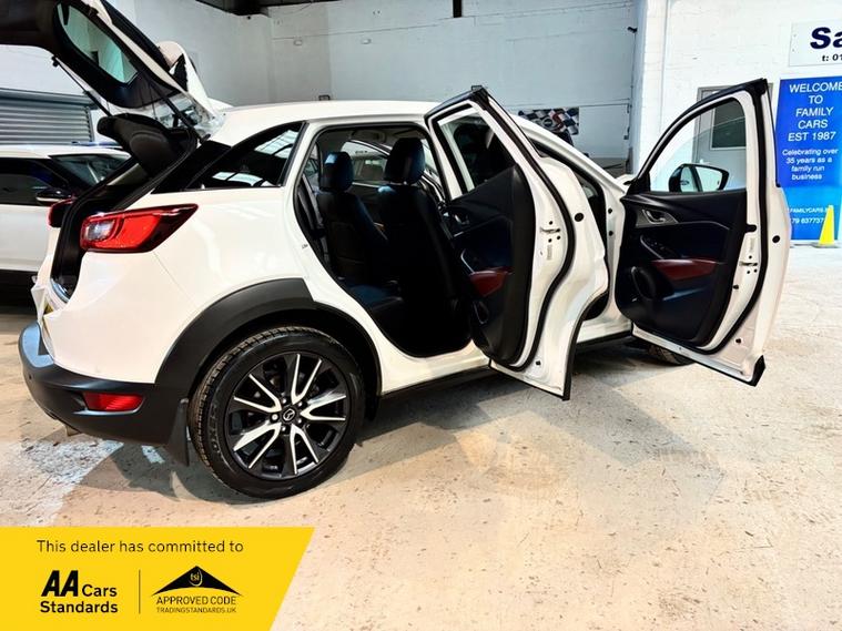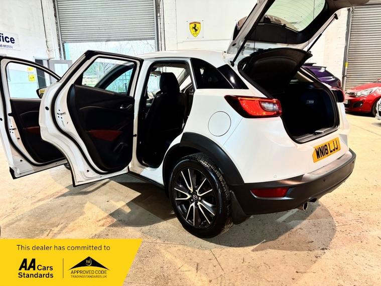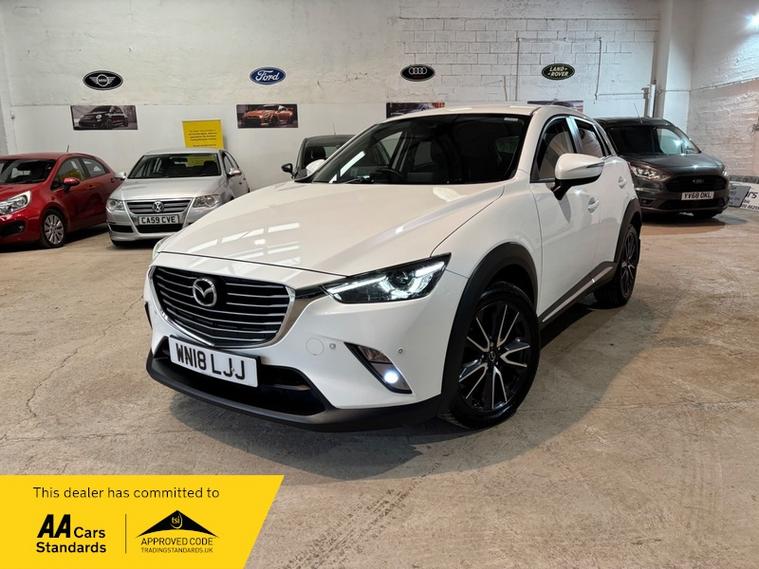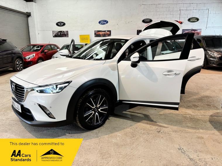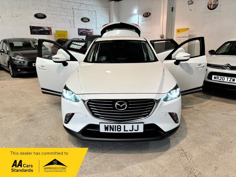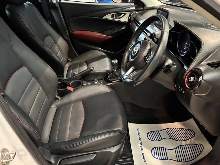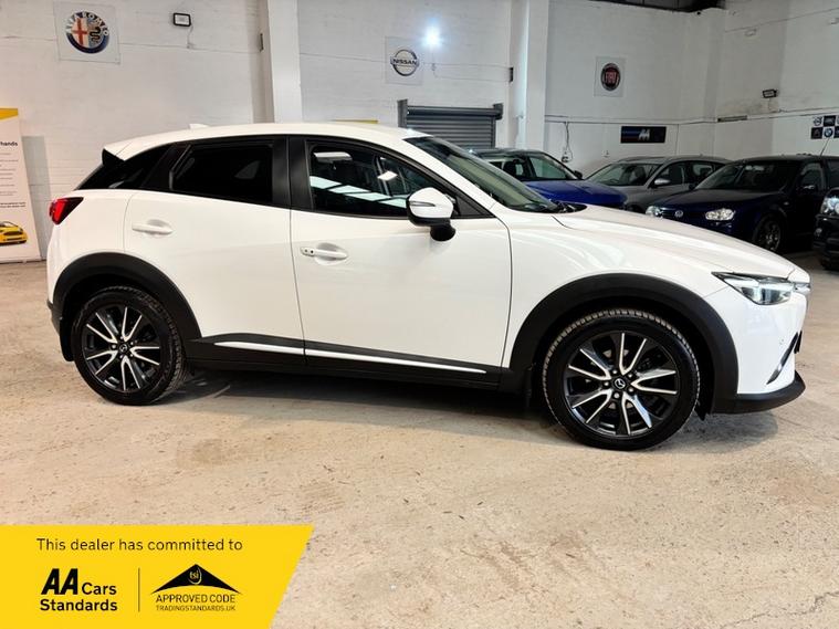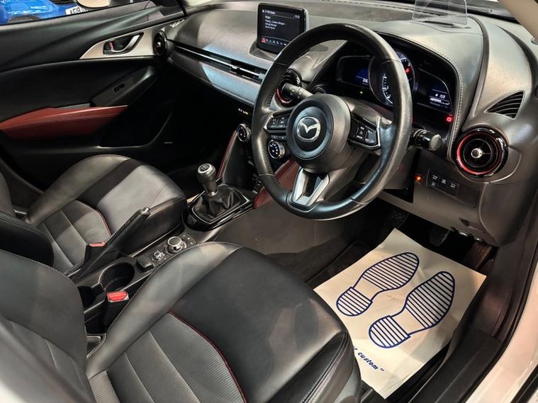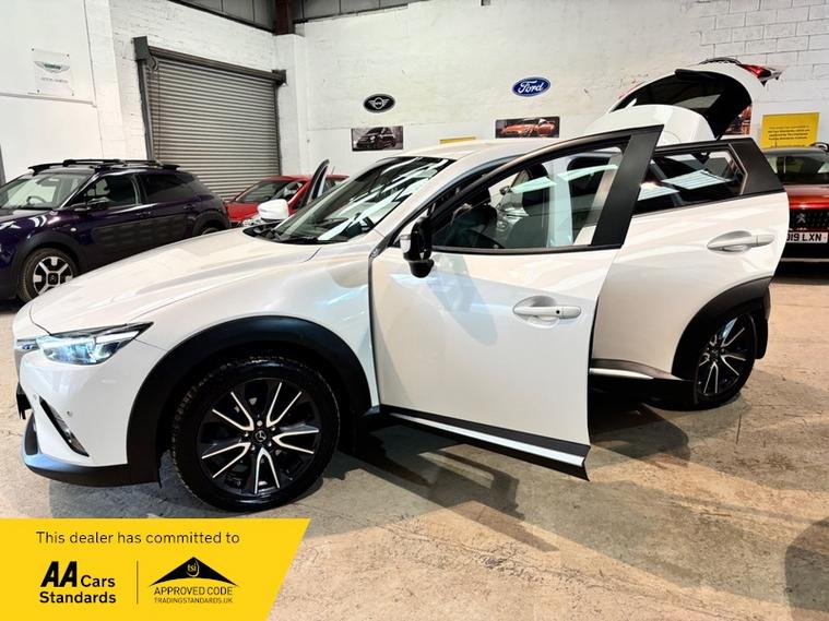 We are a proud family-run business established in 1987, with over 37 years of trusted service. Our fully indoor showroom allows you to browse comfortably in any weather. Every vehicle is HPI clear and comes with a 3-month comprehensive warranty, plus 12 months of basic AA breakdown cover for added peace of mind. We are an AA Cars Assured and Trading Standards Approved dealership, so you can buy with complete confidence, we are pleased to offer this MAZDA CX-3 2.0 SKYACTIV-G Sport Nav SUV 5dr Petrol Manual Euro 6 (s/s) (121 ps), very stunning example throughout, looks fantastic in Mazda snow flake white pearl, huge specification including, satellite navigation, full heated leather seats, heated steering wheel, XENON HEADLIGHTS, reverse cam, privacy glass, Bluetooth, Bose sound system + much more, vehicle supplied with 2 keys, owners book pack, service history boasting 6 recorded services, next mot due 26/01/2027, last recorded service 78101 miles, fantastically cared for and maintained example, massive spec model, ulez compliant.