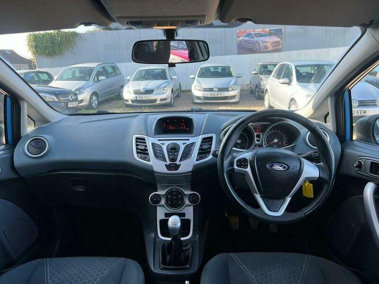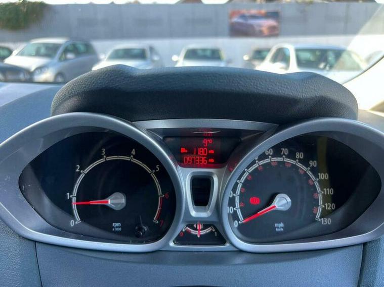 this 2009 Ford Fiesta Zetec, a popular choice for many drivers. This particular model is equipped with a 1.25 litre petrol engine and benefits from attractive metallic paint. It also features convenient rear parking sensors, a full set of carpet mats, and stylish 16 inch 7 spoke Zetec alloy wheels, adding to its appeal.
