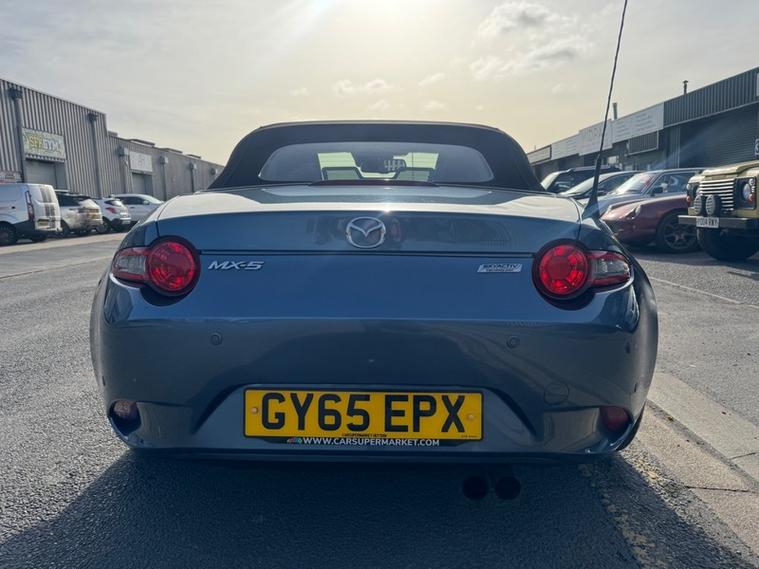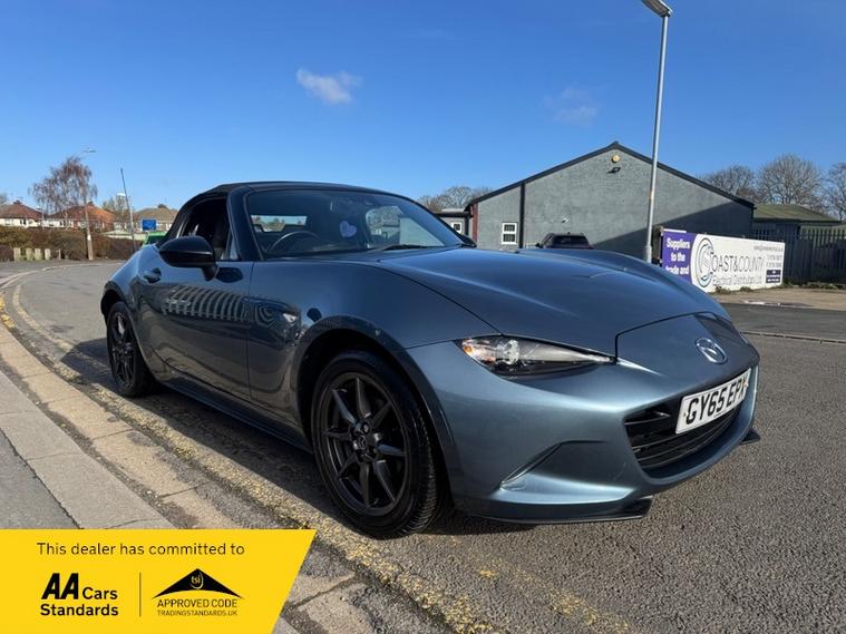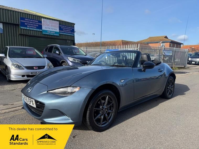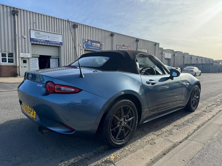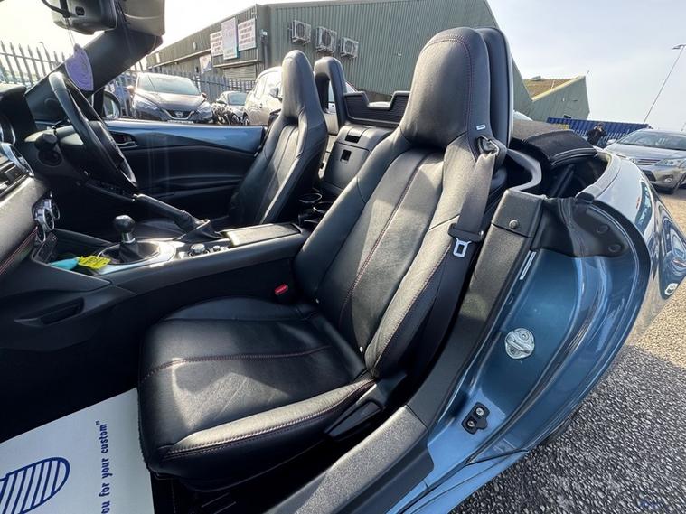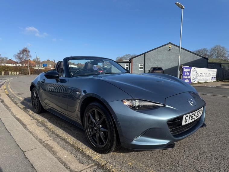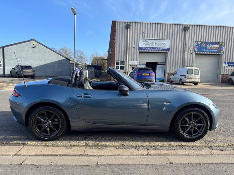 2015 (65) Mazda MX-5 1.5 Sport Nav 2dr in Blue. A highly stylish and reliable convertible sports car that is engaging and fun to drive. Manual opening and closing convertible soft top, very easy to do and means no possibility of electrical roof issues. Good Service History with 10 stamps (9 digital stamps). 2 Owner Car with 2 keys. Punchy chain driven 1.5 naturally aspirated petrol engine producing 129 BHP and 150 NM of Torque (0-60 in 8.3 seconds). Sport Nav which is a great specification with Large infotainment screen with Navigation, Bluetooth phone+music, Cruise control, Automatic lights/wipers, Keyless stop/start and entry/exit, Working air conditioning, Heated leather seats, Bose sound system, Lane assist, 6 speed manual gearbox, 16 inch alloy wheels, DAB Radio, Leather steering wheel/Gearknob/Handbrake lever, Rear parking sensors and more. December 2026 MOT, Fresh Service and 6 Months with the sale. Finance Available.