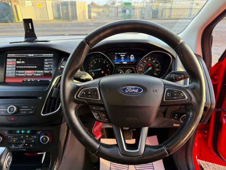 Excellent bodywork, excellent tyre condition, full Ford main dealer service history, 2keys, This 2015 Ford Focus Titanium is a great choice for those seeking a reliable and well equipped vehicle. Powered by a 1.6 litre petrol engine, this Euro 6 compliant model offers a smooth driving experience. It comes with automatic headlights that switch on when needed, rear parking sensors to assist with manoeuvring, and electronic automatic temperature control for a comfortable cabin environment. You can also enjoy your favourite music on the go with Bluetooth audio streaming.