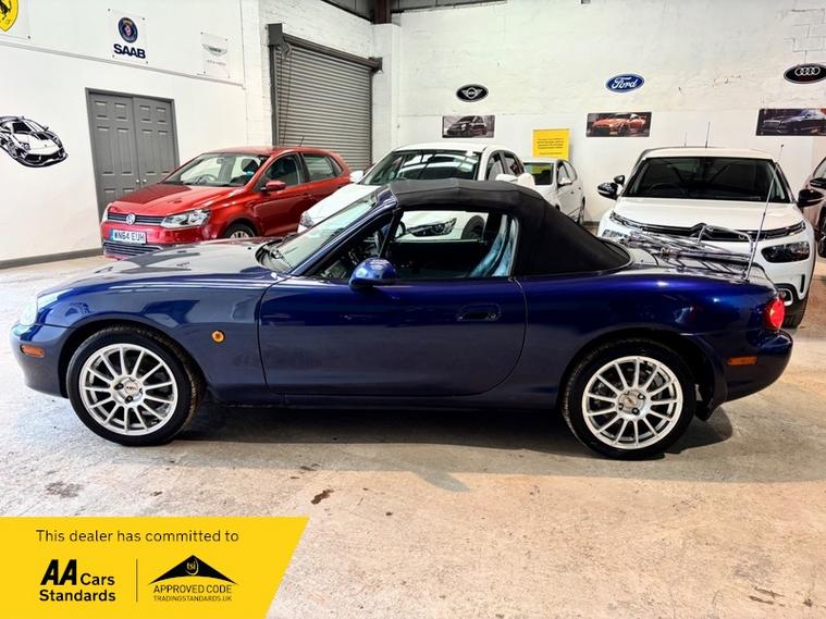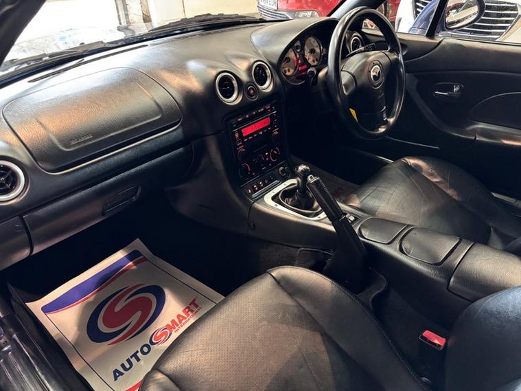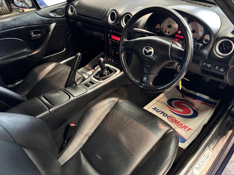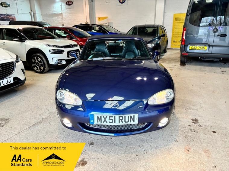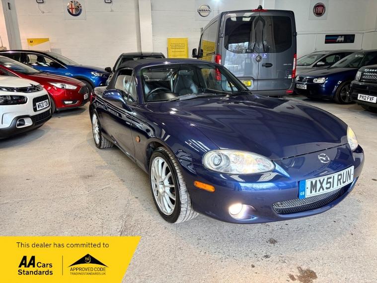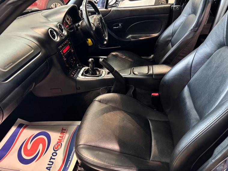 We are a proud family-run business established in 1987, with over 37 years of trusted service. Our fully indoor showroom allows you to browse comfortably in any weather. Every vehicle is HPI clear and comes with a 3-month comprehensive warranty, plus 12 months of basic AA breakdown cover for added peace of mind. We are an AA Cars Assured and Trading Standards Approved dealership, so you can buy with complete confidence, we are pleased to offer this MAZDA MX5 1.8 Sport Convertible 2dr Petrol Manual (215 g/km, 146 bhp), great looking example, high spec including a 6 speed manual gearbox, full leather seats, heated seats, chrome boot luggage rack, boot, bag, tonneau cover, mesh grill, vehicle supplied with 2 keys, owners book pack including original brochure, service booklet, a portfolio of bills / invoices boasting a full service history with the most recent service carried out @ 104000 miles, next mot due 05/02/2027, this is a real eye catching example with ( MX51 RUN ) private plate included in the sale, recent work includes a full service including spark plugs, new rear brake pads / callipers. Cambelt replaced in 2021.