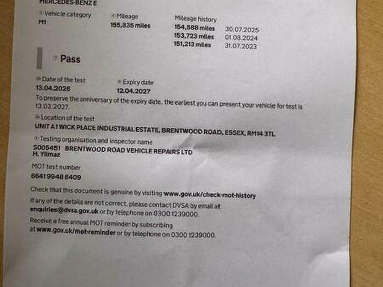 Full Mercedes Benz Main Dealer Service History.