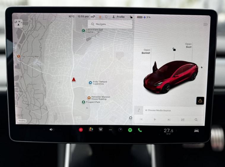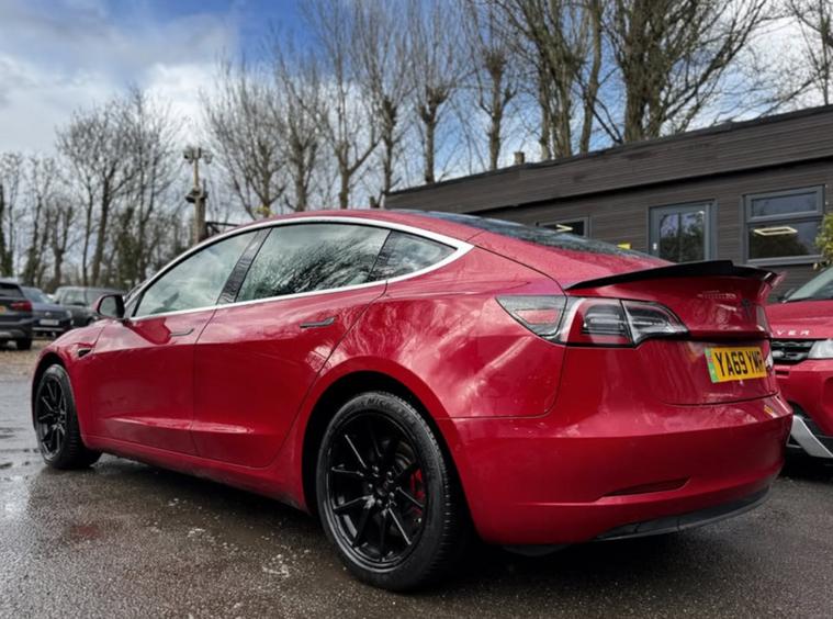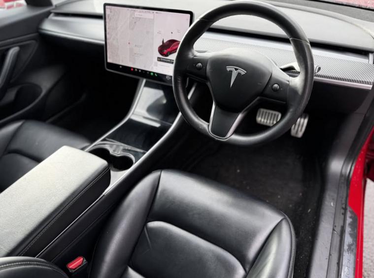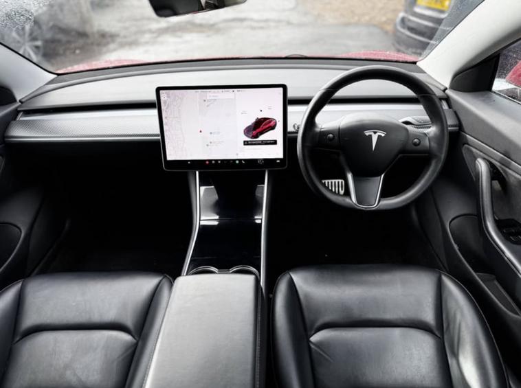 Finished in red with black leather interior, alloy wheels, dual climate control, full panoramic roof, heated electric memory seats, plus all the usual Tesla mod cons.