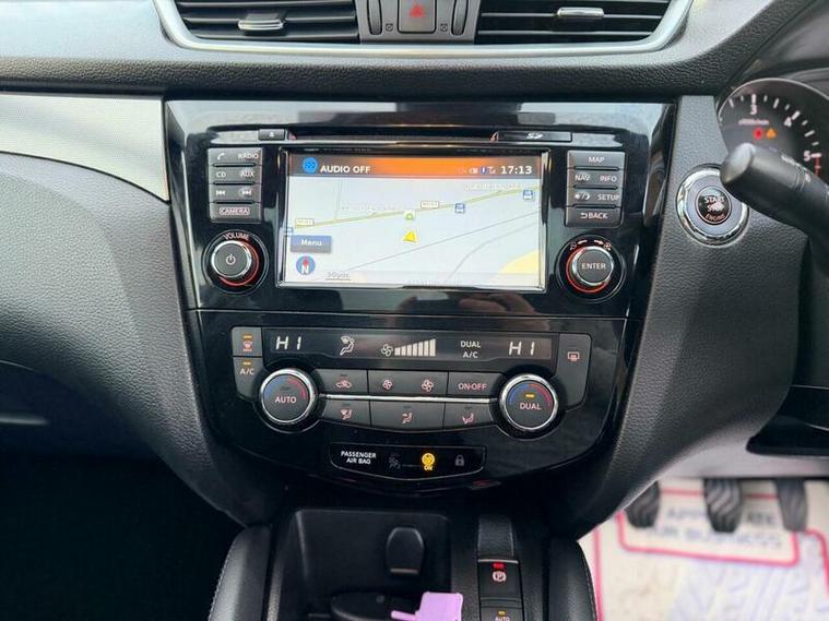 This has a huge spec from factory; 360 Degree Camera, Fixed Glass Sunroof, Power Folding Mirrors, Lane Warning Departure, Parking Sensors - Front and Rear, Cruise Control, Nissan Navigation System, Telephone Preparation, Dual Auto Climate Control, AUX -USB and 12 V Socket Input, ISOFIX, Centre Console Ambient Lighting, Xenon Headlights with Day Time Running Lights, Privacy Windows, 18' Alloy Wheels - 5 Spoke Design - Diamond Cut. LED Pack, Cloth - Anthracite Bi-Colour, Heat Pack, Executive Pack, Rear View Camera, ISOFIX Child Seat Anchoring Points - Rear x2, Puncture Repair Kit, NissanConnect Evo Touchscreen Navigation and Entertainment System, Nissan Anti Theft System Immobiliser, Carbon Graphite Dash Trim, 6 Speakers, AUX Socket. (Please see EXTRA FEATURES section for full list).