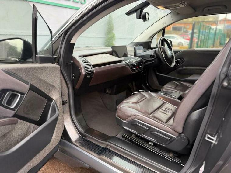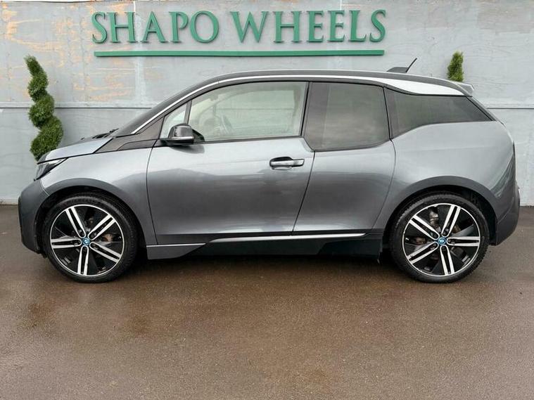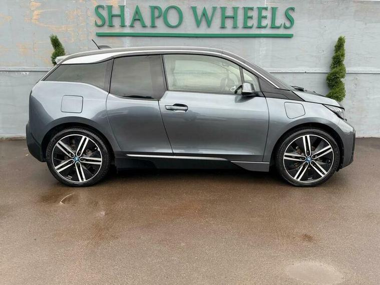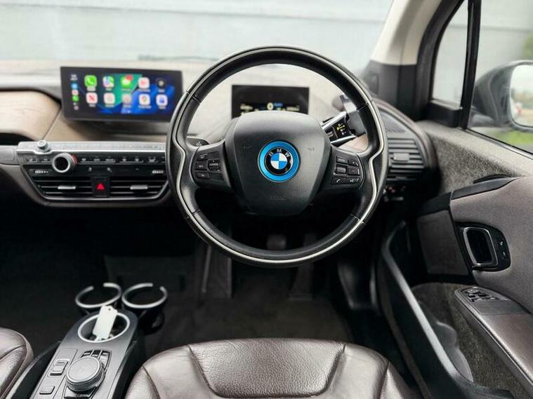 Shapo Wheels Limited presents the BMW i3 33kWh Auto Euro 6 (s/s) 5dr (Range Extender) + AUTOMATIC + PETROL HYBRID + 5 DOOR + HPI CLEAR + PART SERVICE HISTORY + LAST SERVICED IN FEBRUARY 2026 + FRESH MOT + APPLE CARPLAY + REVERSE CAMERA + HARMON KARDON SPEAKERS + NAV + BLUETOOTH + HEATED LEATHER SEATS + AUTO LIGHTS + AUTO WIPERS + AUTO FOLDING MIRRORS + CRUISE CONTROL + ULEZ COMPLIANT + SPARE KEY PRESENT.