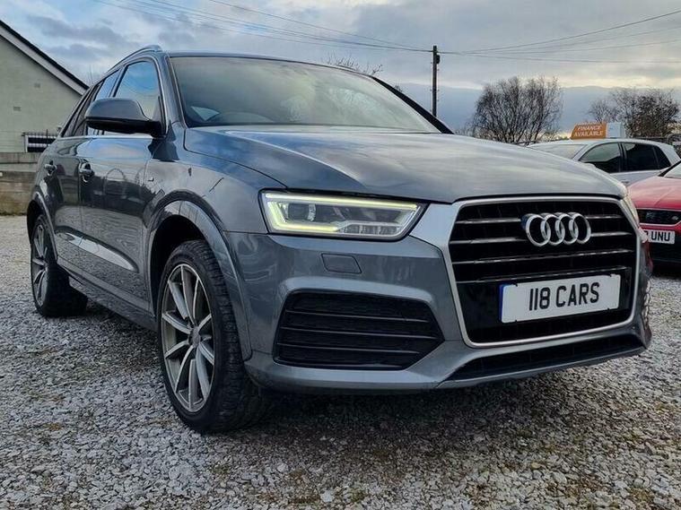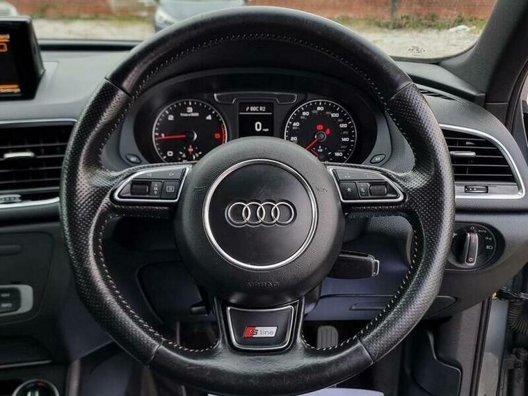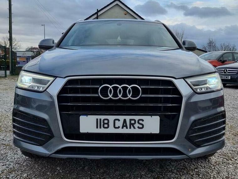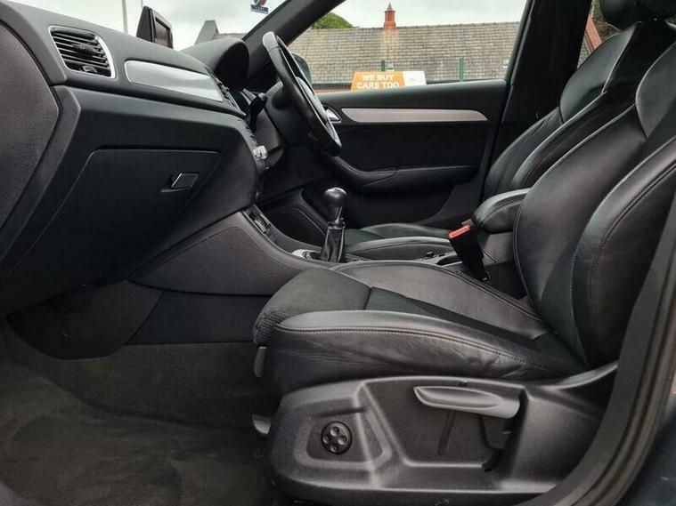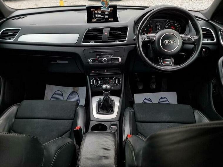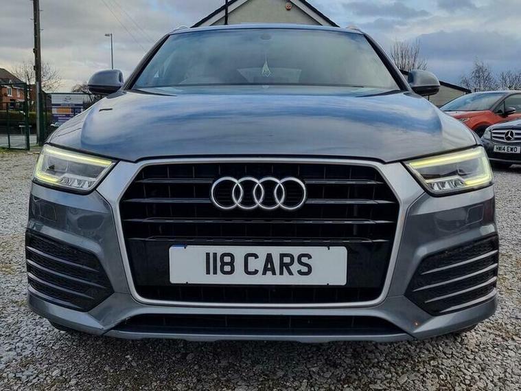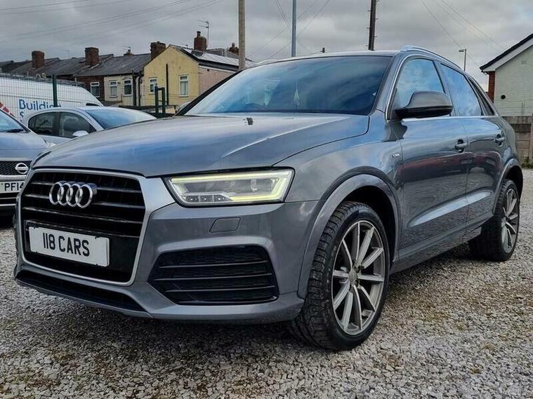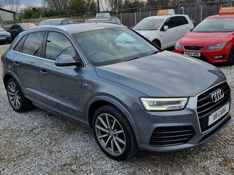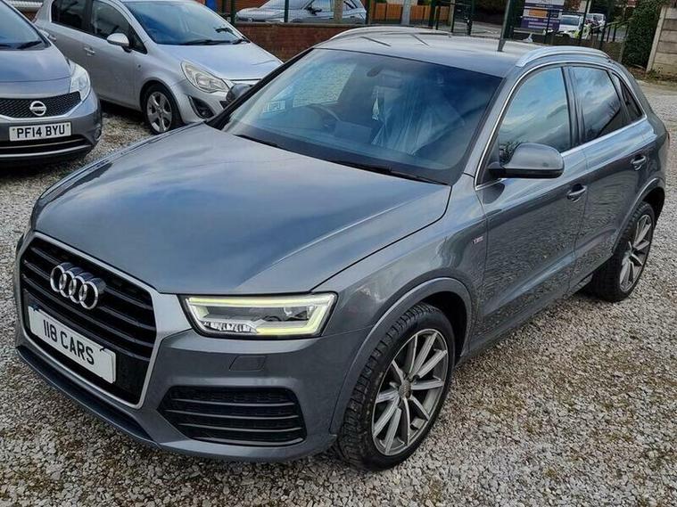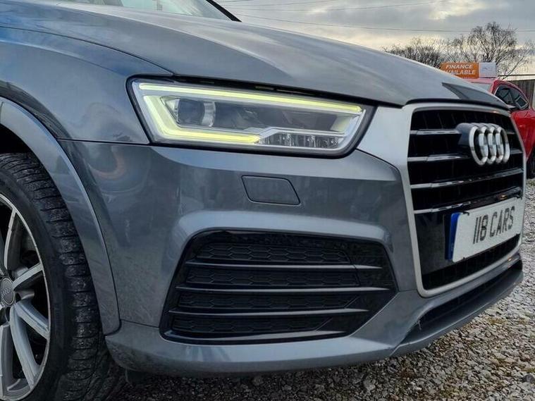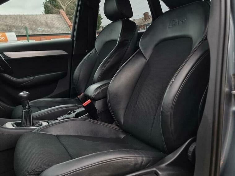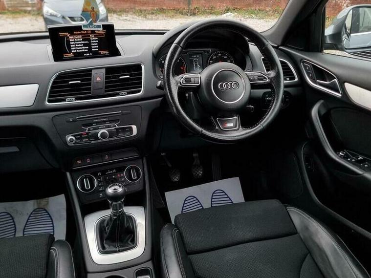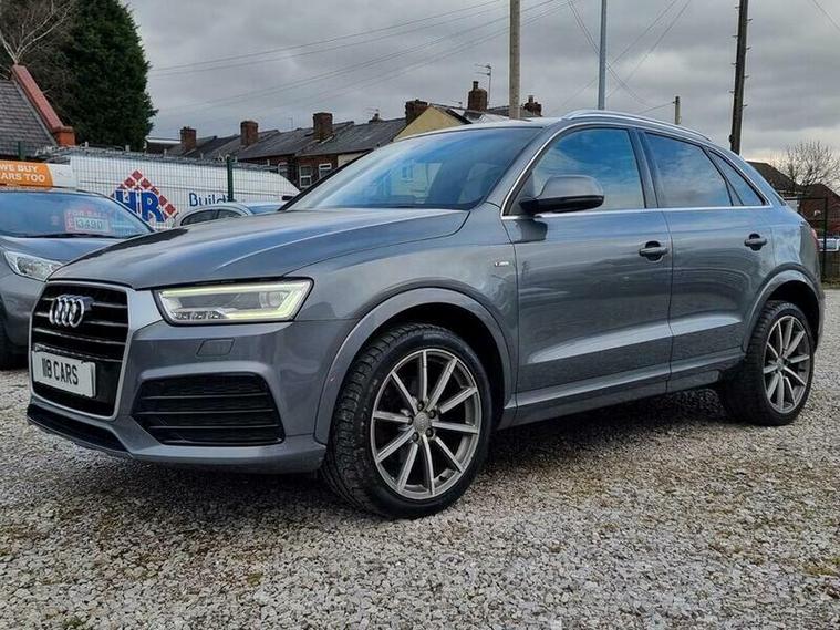 A STUNNING EXAMPLE OF THIS BEAUTIFUL 2016 AUDI Q3 2.0 TDI S-LINE MODEL WITH ONLY 1 FORMER KEEPER, 2 KEYS AND SERVICE HISTORY. LOVELY SEPCIFICATION INCLUDING, SATELLITE NAVIGATION, HALF LEATHER INTERIOR WITH EMBOSSED S-LINE EMBLEM, XENON HEADLIGHTS WITH LED DRL RUNNING LIGHTS, 19' MULTI SPOKE ALLOY WHEELS, DAB RADIO, PARKING SENSORS, CLIMATE PACK, PRIVACY GLASS, ELECTRIC POWER FOLDING MIRRORS, ELECTRIC BOOT WITH REMOTE RELEASE, MF S-LINE STEERING WHEEL, FULL ELECTRIC PACK, BLUETOOTH CONNECTIVITY, LIGHT AND RAIN SENSORS, AUX/USB PORTS, STOP/START TECHNOLOGY, EURO 6 ULEZ ENGINE, PRESENTED IN THE POPULAR MONSOON GREY METALLIC.THIS STUNNING AUDI COMES WITH 3 MONTHS WARRANTY and 12 MONTHS AA BREAKDOWN COVER FOR YOUR COMPLETE PEACE OF MIND, VIEWING HIGHLY RECOMMENDED, 1ST TO SEE WILL DEFINITELY BUY, WE CAN TAILOR FINANCE PACKAGES TO SUIT YOUR PERSONAL REQUIREMENTS, PART EXCHANGE WELCOME, WE ACCEPT ALL CREDIT/DEBIT CARDS, VISIT dealer's website FOR FULL STOCKLIST OR COME VISIT OUR PREMISES AT: 114 STATION ROAD, SWINTON, MANCHESTER, M27 6BT, TELEPHONE 01616239507 OR MOBILE 01616239507 OUT OF HOURS.
