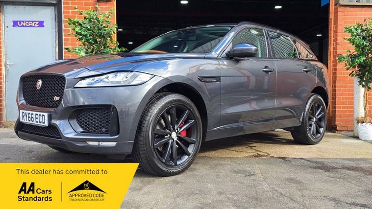 WELCOME TO UNICARZ LTD WE ARE PLEASED TO OFFER YOU THIS JUST ARRIVED 66 PLATE JAGUAR F-PACE 3.0 V6 S AUTO AWD EURO6 SUV, 99K WITH JAGUAR + INDEPENDENT SERVICE HISTORY, 2 KEYS , 2 OWNERS, MOT WILL BE FEBRUARY 2027, 12 MONTHS BASIC ROADSIDE ASSISTANCE, 3 MONTHS STANDARD NATIONWIDE WARRANTY, MULTIFUNCTION STEERING WHEEL, CRUISE CONTROL, PANORAMIC GLASS ROOF, LED DAYTIME RUNNING LIGHTS, REVERSING CAMERA, FULL LEATHER INTERIOR, NAVIGATION SYSTEM, HEATED SEATS, DAB RADIO, PARKING SENSORS, AIR CONDITIONING, MEMORY SEATS , MERIDIAN SOUND SYSTEM, ELECTRIC TAILGATE, PLUS MORE...., SOUNDS AMAZING, DRIVES BRILLIANT, PART EXCHANGE WELCOME, FINANCE