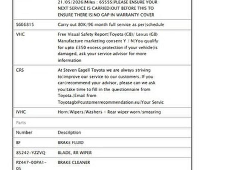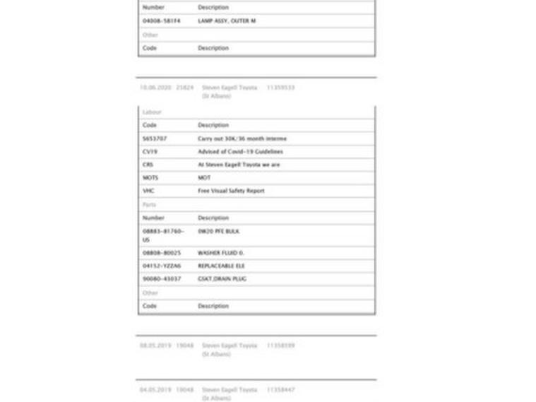 This car comes with 5 seats, White, 3 owners, 18in Alloy Wheels - Black Machined-Faced - 10-Double-Spoke, 3-Spoke Leather Steering Wheel with Multimedia Switches, 4.2in Colour TFT Screen for Multi-Information Display, ABS - Anti Lock Braking System, Adjustable Speed Limiter - ASL, Audio and Telephone Switches on Steering Wheel, Auto Folding - Door Mirrors, Auto Headlights, BA - Brake Assist, Black Diffuser, Black Roof Lining, Black and Body-Coloured Rear Bumper, Blind Spot Monitor - BSM, Bluetooth Connectivity, Body Coloured Outside Door Handles, Body-Coloured Front Bumper, Boot Door Release with Push Button, Boot Lamp, Child Safety Locks on Rear Doors, DAB Digital Radio, Dark Brown Front Door Insert, Driver and Front Passenger Personal Lights, Driver and Front Passenger Whiplash Injury Lessening - WIL - Seats, Driver and Passenger Seatback Pockets, Dual-Zone Automatic Air Conditioning, Electrically Assisted Power Steering - EPS, Electronic Parking Brake, Follow Me Home Headlights, Front Cup Holders, Front Fog Lights, Front Passenger Airbag On-Off Switch, Front and Rear Power Windows with Auto Up-Down and Anti-Jam Protection, Glovebox with Internal Light, HAC - Hill Start Assist Control, Hard Tonneau Cover, Heated Driver and Front Passenger Seat, High Mounted Rear Brake Light - LED, Humidifying Nanoe Air Purifier, ISOFIX Fixing Points, Illuminated Entry System, Immobiliser, Intrusion Alarm, LED Daytime Running Lights, Leather Effect Padded Armrest on Front Console Box, Leather Shift Lever and Knob, Light Blue Ambient Lighting on Front Doors, Motion Sensor Alarm, Parking Pack, Parking Sensors and Intelligent Park Assist - IPA, Power Adjustable Lumbar Support on Driver Seat, Power Door Locks, Projector and Reflector Halogen Headlights, Push Button Start, Rain Sensing Wipers, Rear Combination Lights, Rear Cross Traffic Alert - RCTA, Rear Privacy Glass, Rear Window Wiper, Remote Boot Door Release on Key, Reversing Camera, Satin Chrome Rings on Analogue Speedometer, Seat Belt Reminder - Front and Rear, Silver Decoration Line on Front Door and Dashboard, Smart Entry and Push Button Start System, Speakers x6, Supplemental Restraint System - SRS - Airbags - 7 Airbags, TPMS - Tyre Pressure Monitoring System, Toyota Safety Sense, Toyota Touch 2 Multimedia System with 7in Display, Toyota Touch 2 with Go Navigation, Traction Control - TRC, Tyre Repair Kit, USB and Aux In Connectors and 12V Front Outlet, VSC - Vehicle Stability Control, Voice Recognition,