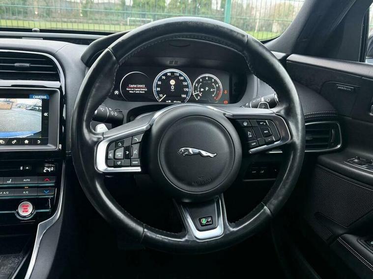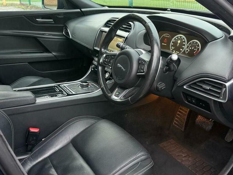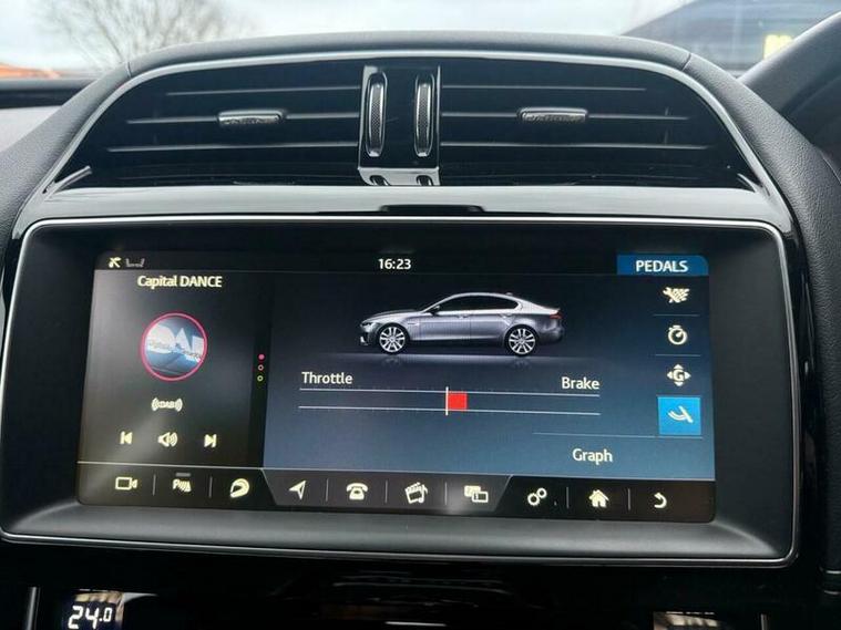This 2017 Jaguar XE i R-Sport offers a compelling blend of performance and style. As a Euro 6 compliant model, it features a 2.0 litre petrol engine and is presented in the R-Sport trim. Notable features include the distinctive 25t badge, dual tailpipes with 75mm finishers, and Bluetooth telephone connectivity for seamless communication on the go. For added convenience and safety, this XE is equipped with rear parking aid and automatic headlights, ensuring a more relaxed driving experience.