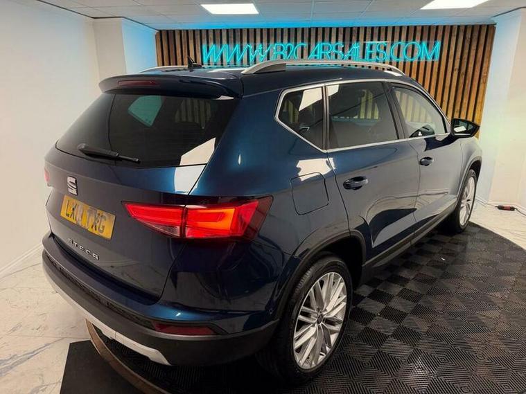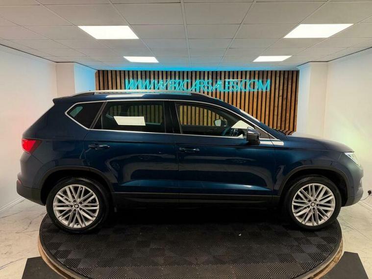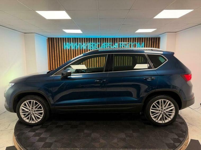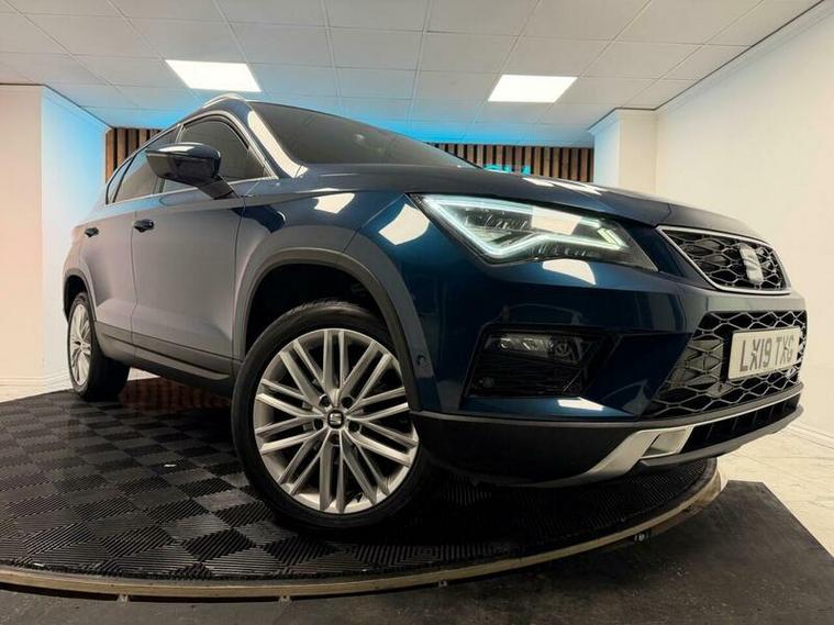 This 2019 SEAT Ateca TSI EVO XCELLENCE boasts a full service history, 2 keys and an MOT valid until August 2026, offering excellent peace of mind. This one previous owner vehicle has a clear vehicle history check and its last service was completed on 17 February 2026 at 56, 973 miles. Powered by a 1.5 litre Euro 6 compliant petrol engine, this XCELLENCE trim model is equipped with a Convenience Pack featuring automatic headlights, Adaptive Cruise Control, and Full Link integration for Android Auto and Apple CarPlay. You'll also appreciate the Dual Zone Climate Control and Full LED Headlights.