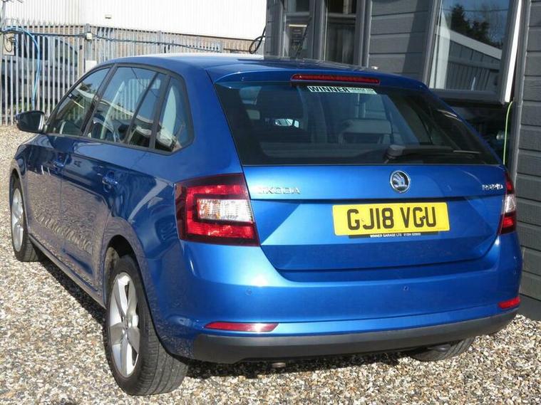 Usual SE Tech refinements and body styling including PAS, ABS, AC, CD Player, This 2018 Skoda Rapid Spaceback TSI SE Tech is presented with a clear vehicle history check, offering peace of mind for its next owner. This Euro 6 compliant 1.0 litre petrol model benefits from the SE Tech trim, featuring the Amundsen touchscreen navigation system complete with Bluetooth connectivity, and rear parking sensors to aid manoeuvring. You can also enjoy music and calls through the Radio Swing system, also equipped with Bluetooth, and stay comfortable in all conditions thanks to the climate control air conditioning.