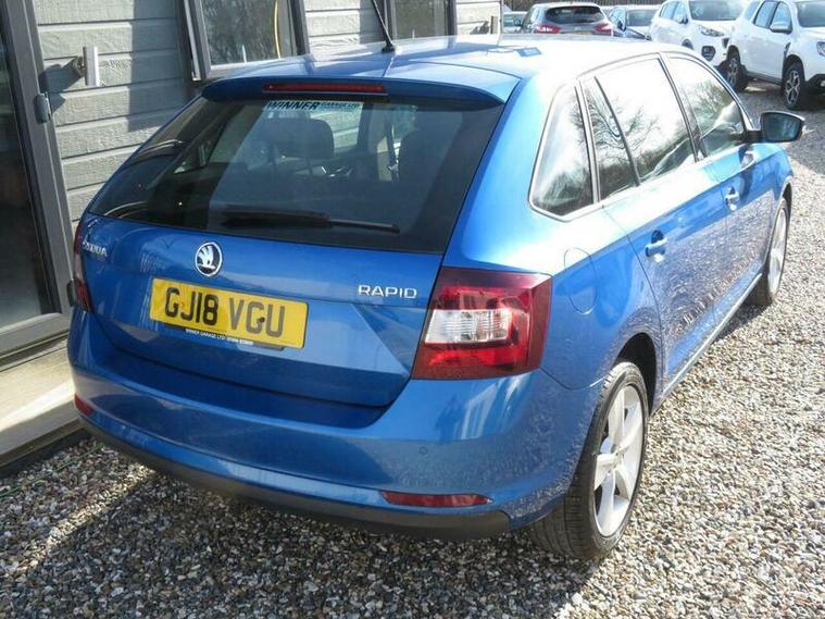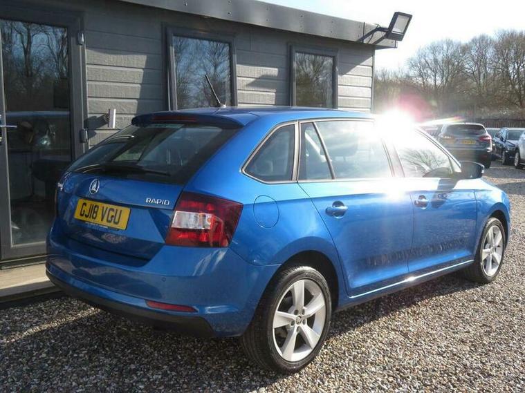 Here at Bespoke Motor Solutions, we have this wonderful example of this beautiful 2018 18 REG Skoda Rapid Spaceback 1.0 TSI SE TECH EURO 6 5DR, this car has covered 87, 357 miles and is backed with a Full Service History, this vehicle will come with a new or long MOT and a fresh service, this lovely car is finished in a very highly desired Metallic Blue with Dark Sports interior.