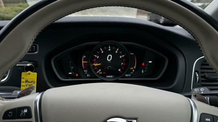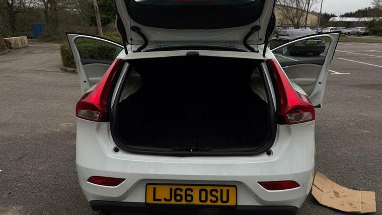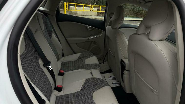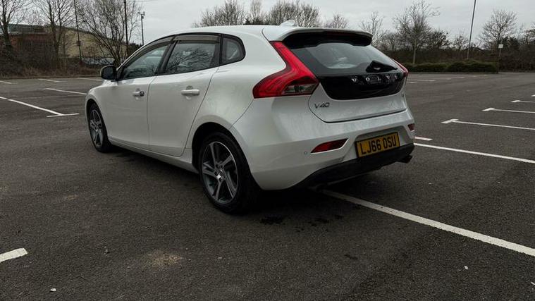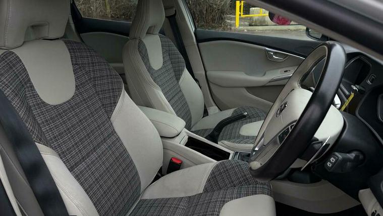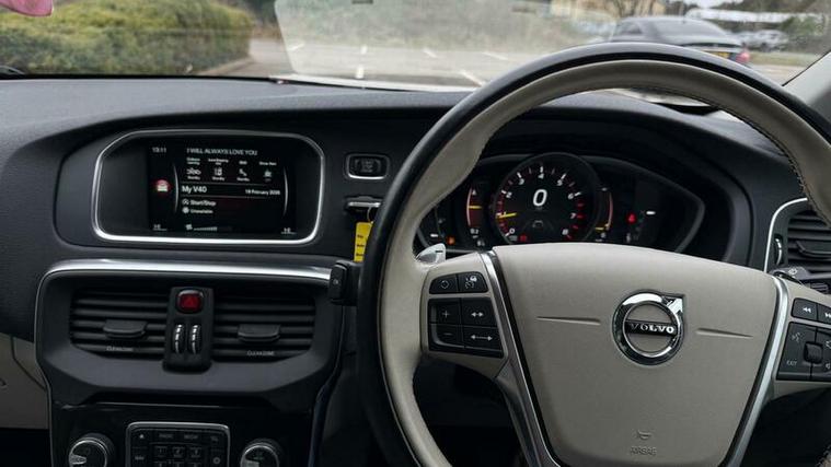 Finished in elegant Inscription styling, this V40 offers a more premium and luxurious feel than standard models. The interior features a stunning two-tone light beige with patterned textile seats, giving the cabin a bright, upscale Scandinavian design feel.