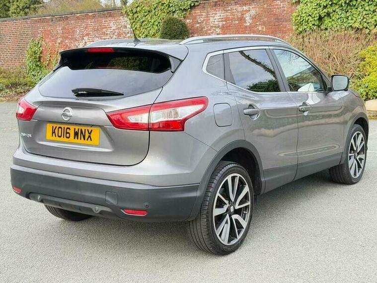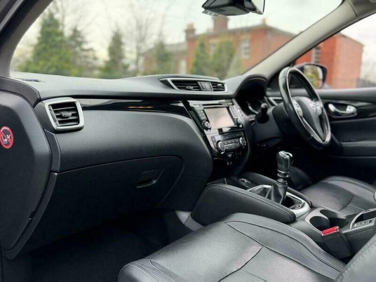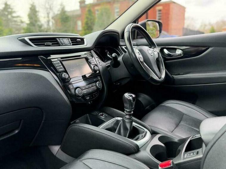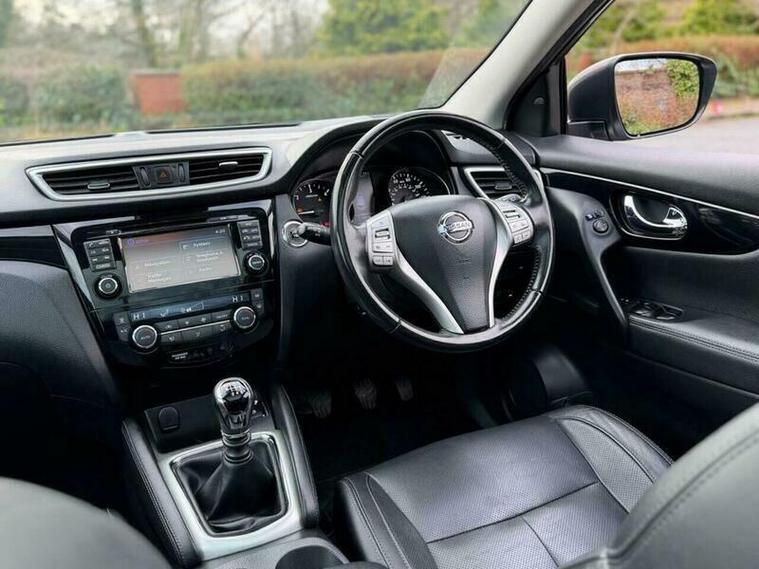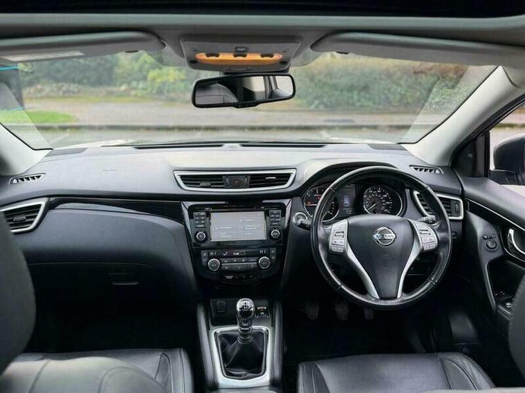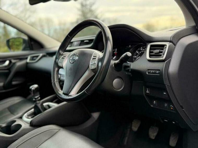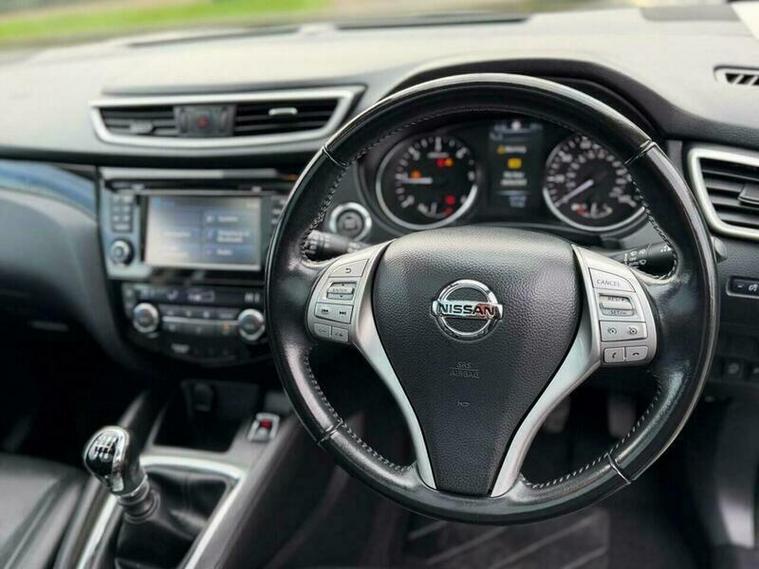This 2016 Nissan Qashqai dCi Tekna boasts a remarkably low mileage for its age, having covered just 70, 215 miles, and comes with a full service history and a clear vehicle history check. This Four Wheel Drive model features a 1.6L Euro 6 diesel engine and is presented in the desirable Tekna trim. You can drive away with confidence, knowing it includes a 3 month warranty and will be provided with 12 months MOT upon purchase. Notable features include a stunning Panoramic Glass Roof, Heated Front Seats, front and rear parking sensors, automatic headlights, and an Around View Monitor offering a 360 degree bird's eye view, making parking and manoeuvring effortless. It also has Full Leather interior, Traction control, Lane tracking, Cruise Control, Radio/CD/USB/Aux In, Dual Climate Control, Power Folding Side mirrors, Bluetooth, Calls Handling and Multifunctional steering wheel.