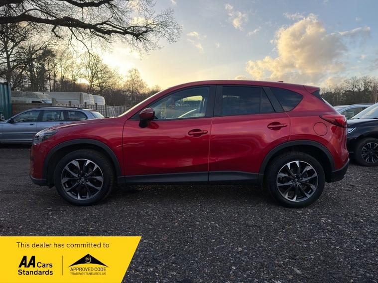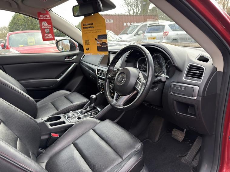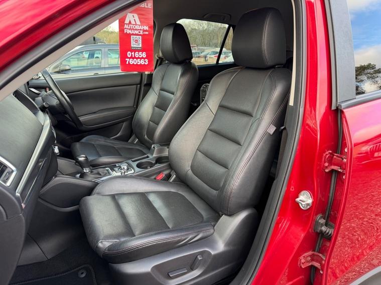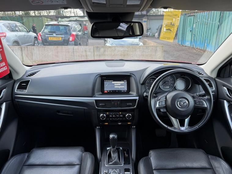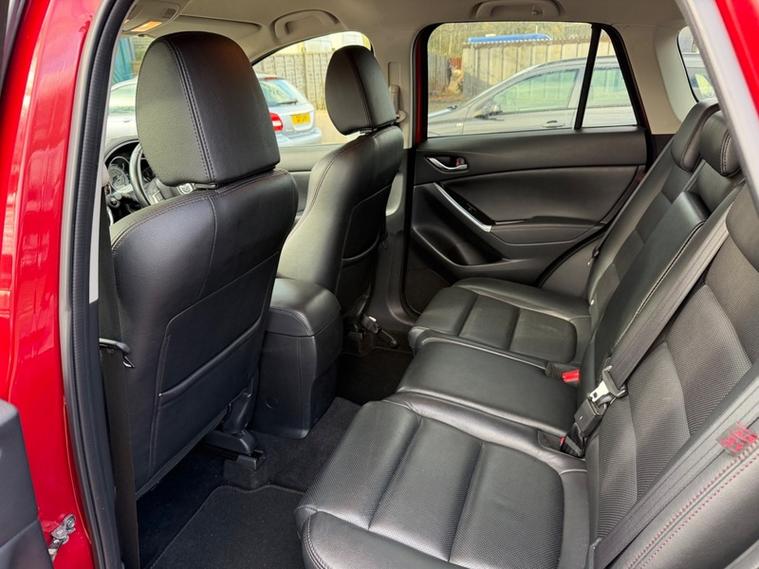 Finished in the gorgeous MAZDA SOUL RED METALLIC, this CX-5 stands out with its FULL BLACK LEATHER INTERIOR with red stitching and & silver trim. It comes with a FULL SERVICE HISTORY and 2 keys. The vehicle was last serviced @58, 618 miles dated 15/04/25. The original Mazda folder, supplements and manuals are present. The vehicle has had 3 former keepers from new. The exterior is in near immaculate condition. The MOT is until 24/02/2027