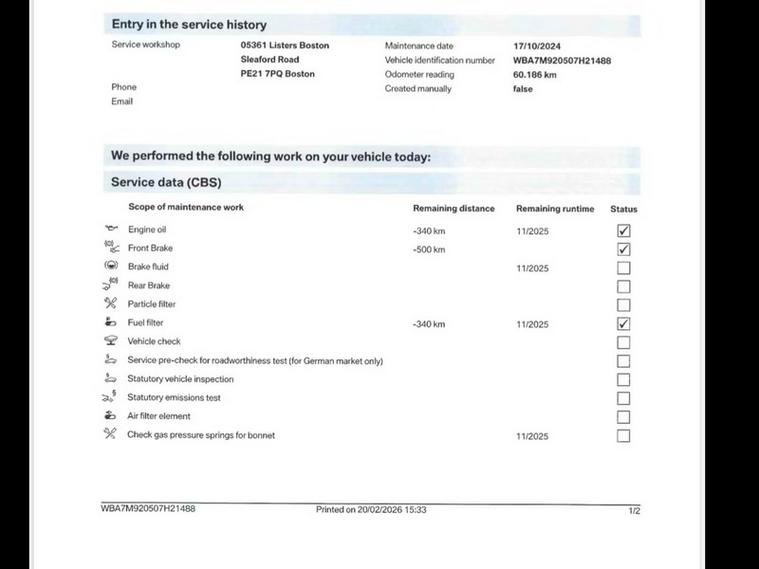 This car comes with 5 seats, White, 3 owners, Upgrades - Sun Protection Glazing, Perforated Dakota Leather - Black with Grey Highlight, Standard Features - 12V Power Socket in Centre Console Front with Blanking Plug, 18in Alloy Wheels - Double-Spoke Style 819M, Active Guard Plus, Air Conditioning Automatic with Two-Zone Control, Airbags, Alarm System - Thatcham 1 with Remote Control and Engine Immobiliser, Armrest - Front - Folding with Storage Compartment, Attentiveness Assistant, Automatically Dimming Rear View Mirror, BMW ConnectedDrive Online Services, BMW Emergency Call, BMW Live Cockpit Plus, BMW Mobility Tyre Sealing System, BMW TeleServices, Bluetooth - Audio Streaming - with Compatible Devices, Bluetooth Hands Free with USB Audio Interface, Bumper System Front and Rear - Replaceable Deformation Elements for Impacts Up to 9mph, Central Locking Switch - Doors - Fuel Filler Cap - Luggage Compartment, Check Control Warning System for Monitoring of Lights and Door-Luggage Compartment Open Warning, Child Seat ISOFIX Attachment For The Two Outer Rear Seats And Front Passenger Seat, Childproof Locking System - Rear Doors and Electric Windows, Condition Based Service, Connected Package Plus, Contrast Stitching - Instrument Panel, Crash Sensor, Cruise Control with Brake Function and Speed Limiter, Cupholders - Two Front Centre Console, DAB Digital Radio, DSC - Dynamic Stability Control Plus, Dead-locking Function System to all Doors, Direction Indicator Side Lights Integrated in Exterior Mirrors, Door Sill Finishers in Black Plastic with Inserted M Designation in Metallic Look - Front Only, Drive Performance Control with ECO PRO and Comfort Modes, Drive-Away Locking System on All Doors-Luggage Compartment - Can Be De-Activated in iDrive Settings, ECO PRO Mode, EPS - Electric Power Steering, Electric Handbrake, Electric Windows - Front and Rear with Open-Close Fingertip Control - Trap Release and Child Lock Function, Exhaust Tailpipe 90mm - Chrome Twin - Round - Left and Right - Split, Extended Lighting, Extended Storage, Exterior Mirrors - Electrically Folding with Anti Dazzle, Exterior Parts in Body Colour, Exterior Trim - High Gloss Shadowline, First Aid Kit and Warning Triangle, Floor Mats in Anthracite Velour with Contrasting Colour Seam to Match Contrast Stitching on Instrument panel, Front Windscreen Wipers with Integrated Washer Jets, Glove Box with Light, Grab Handles - Integrated in Roof Linings - Four, Headlining - Anthracite, Heat Protection Glazing with Green Tint, High Level Third Brake Light, Illuminated Boston Interior Trim, Incorrect Fuelling Protection System, Integrated Owners Handbook - Within iDrive Menu, Interior Lighting, Kidney Grille - Chrome Frame with Satin Aluminium Struts, LED Fog Lights - Front, LED Headlights, Locking Wheel Bolts, Luggage Compartment Package, M Logo Designation Chrome - Side, M Sport Aerodynamic Package, M Sport Package, M Sport Steering Wheel, M Sport Suspension, Model Designation on Tailgate, Multifunction Controls for Steering Wheel, OBC - On-Board Computer, Oil Sensor For Level and Grade, Optimum Shift Indicator, PDC - Park Distance Control - Front and Rear, Performance Control, Personal Profile, Rain Sensor with Automatic Headlight Activation, Rear Fog Light, Rear Seat Backrest with Manual 60-40 Split Folding with 3 Top Tether Clips Integrated on Rear of Seat Panels, Rear Seat Headrests - Three, Remote Control Key x2, Reversing Light in Rear Light Clusters, Seat Belt Security Check for Driver and Front Passenger, Seat Belt Warning if Driver Starts Ignition without Putting on Seatbelt, Seat Heating for Driver and Front Passenger, Servotronic Steering, Shark Fin, Side Armrests - Front and Rear Integrated into Door Trim, Side Impact Protection, Sport Seats - Front, Start-Stop Button - Illuminated in Centre Console with Keyless Engine Start and Auto Start-Stop Deactivation Button, Steering Column with Manual Reach and Rake Adjustment, Stereo Speaker System, Storage Features, Sun Visors with Vanity Mirrors and Insert Tab, TPMS - Tyre Pressure Monitoring System, Three-Point Seat Belts - All Seats, Twin Horns, Tyres - Reduced Rolling Resistance, Visible VIN, Welcome Light, Windscreen Wiper - Rear,