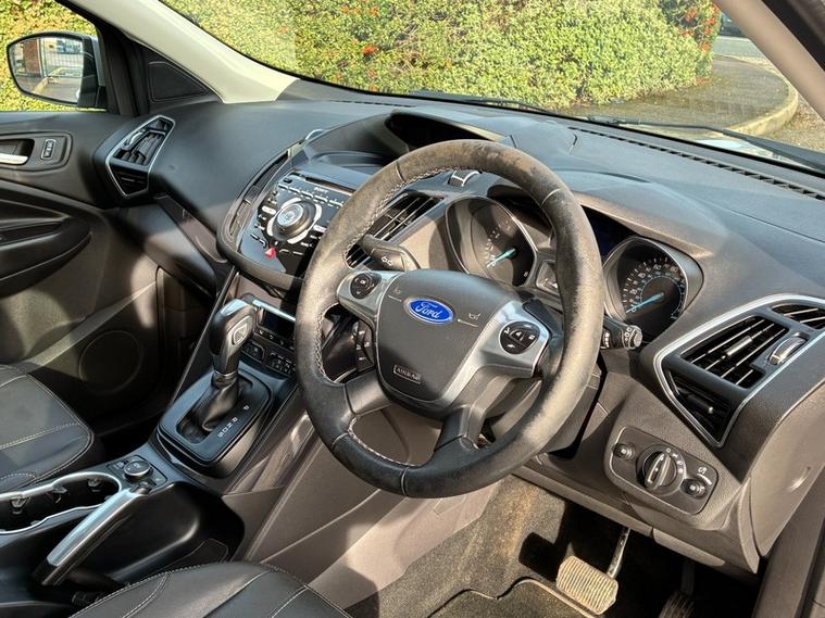 +Free 12 Months Extended Warranty and 12 Months AA Cover+ This Stunning Kuga Automatic has very low mileage of only 14082 with a full service history all invoices from the ford main dealer and one local garge. it has 11 invoiced services. its a one owner car and is in fantastic condition. the car is a joy to drive being the petrol Automatic, the spec is simply fantatic, it has front and rear parking sensors with a reversing camera, Sat-Nav with DAB RAdio and Bluetooth, an opening panoramic sunroof, heated electric lether seats and a power tailgate to name just a few it really is a well specced car and a fantastic place to be, the car comes with a new mot, 2 keys a full service history and 12 months extended warranty and 12 Months AA cover all for your peace of mind, this fantatic well looked after example with amazing low miles is ready to tets drive and take home today.