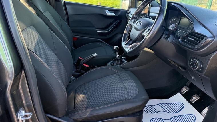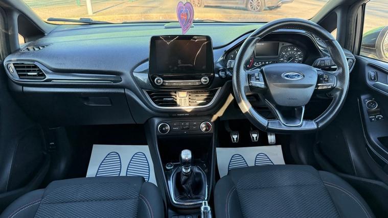 Benefit from peace of mind with a clear vehicle history check and a full service history on this 2018 Ford Fiesta T ST Line. This stylish hatchback is equipped with a 1.0 litre petrol engine and meets Euro 6 emissions standards. It also comes with a 3 month warranty for your added security, and its MOT is valid until January 2027. A CD player is included for your entertainment.
