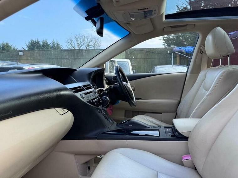 This 2011 Lexus RX 450h SE-I presents a compelling proposition with its remarkably low mileage for its age, having covered just 112, 000 miles, and a clear vehicle history check. This Four Wheel Drive SUV is powered by an efficient 3.5 litre petrol hybrid engine, offering a refined driving experience. The SE-I trim level ensures a comfortable journey, featuring dual zone climate control with a pollen filter and air conditioning. Parking is made easier with front and rear sensors, while HID Bi-Xenon headlights provide excellent visibility. Convenience is further enhanced by the smart entry and start system, allowing for keyless entry and ignition.