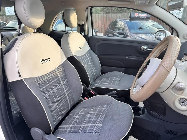 This 2016 Fiat 500 Lounge is a standout example, having been cherished by just one owner since new. It features a fuel efficient 1.2 litre petrol engine, meeting Euro 6 emissions standards. Road Tax only £20 and this particular Lounge model comes with a partial service history, with its last service recorded at 51, 900 miles on 5th November 2025. For your peace of mind, the MOT is valid until November 2026, and the vehicle is supplied with a 3 month warranty and 12 Months Free AA Breakdown Cover., , You will appreciate the array of notable features designed for comfort and convenience, including a 7 inch HD touchscreen radio with Bluetooth, USB, AUX in and DAB functionality, along with chrome trim on the bonnet and air conditioning. Parking is made easier with rear parking sensors, and the fixed glass roof with a sunblind adds a touch of open air feeling. This Fiat 500 also boasts impressive fuel economy, achieving up to 60 miles per gallon, which is significantly better than many other vehicles in its class. Furthermore, its low insurance group and low CO2 emissions make it an economical choice for everyday driving., 3 months warranty, Next MOT due 04/11/2026, Last serviced on 05/11/2025 at 51, 900 miles, Part service history, Excellent bodywork, Interior - Excellent Condition, Tyre condition Excellent, 4 seats, White, 1 owner, Upgrades - 7in HD Touchscreen Radio with Bluetooth - USB-AUX-In and DAB, Chrome Trim on Bonnet, Cloth - Black-Light Grey-Ivory with Ivory Ambience, Standard Features - 12V Socket - Front, 15in Alloy Wheels, 50-50 Split Folding Rear Seat with Height Adjustable Head Restraints, 5in Touchscreen Radio with AUX - USB - DAB - Bluetooth, 7 Airbags, ABS with EBD, Air Conditioning, Automatic Door Locking, Body Coloured Bumpers, Chrome Kit, Chrome Plated Exterior Door Handles, Dualdrive Power Steering, ESC - Electronic Stability Control, Electric Front Windows, Electrically Adjustable Painted Door Mirrors, Fix and Go Puncture Repair Kit, Fixed Glass Roof with Sunblind, Fog Lights, Front Seats with Memory Function, Fuel Cap with Tap, GSI - Gear Shift Indicator, Hazard Light Automatic Activation During Emergency Braking, Heat Reflective Windows, Heated Rear Window, Height Adjustable Drivers Seat, Height Adjustable Front Head Restraints, ISOFIX Attachment Points for Child Safety Seat On Rear Seat, Instrument Panel with Rev Counter, LED Daytime Running Lights, Rear Parking Sensors, Rear Window Wiper-Washer, Remote Central Locking, Seats-back Pockets, Steering Wheel - Height Adjustment, Steering Wheel - Leather with Audio Controls, TPMS - Tyre Pressure Monitoring System, Trip Computer, AA Trusted Dealer, ALL MAJOR CARDS ACCEPTED, OPEN 7 DAYS A WEEK, Visit our website for more stocks